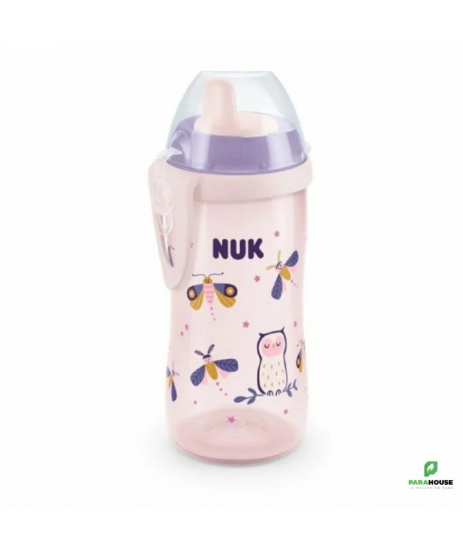 NUK FIRST CHOICE Kiddy Cup Night 300ML 12M+ NUK FIRST CHOICE Kiddy Cup Night 300ML 12M+ : Contient 300ml de liquid, pour les enfants de 12 mois Bec verseur en plastique robuste (PP) résistant aux petites dents Valve étanche facile à utiliser pour une consommation aisée Tasse en matériau léger et robuste (PP), forme ergonomique, sans BPA Anneau clip avec effet de lumière à fixer à la poche ou au pantalon et capuchon de protection intégré Comme toutes les tasses NUK, les NUK Kiddy Cups à effet lumineux sont étanches, de sorte que tout dans le lit reste sec et douillet. Et bien sûr, elles offrent une variété de couleurs et de motifs enchanteurs - spécialement conçues pour des nuits de rêve. Dès que les enfants ont leurs premières dents, ils adorent les utiliser ! NUK Kiddy Cup dispose pour cela d'un bec verseur en plastique robuste (polypropylène). Il résiste aux petites dents et est particulièrement durable. La tasse NUK Kiddy Cup contient 300ml de boisson pour les enfants assoiffés, sa taille permet aux petites mains de la saisir et de la tenir facilement. La valve étanche facile d’utilisation se détache très facilement de l’élément de la tasse pour un nettoyage facile et en profondeur. Le rattachement flexible à l’élément garantit que la valve ne se perde pas. La tasse et ses composants conviennent pour le lave-vaisselle. La tasse Kiddy Cup est compatible avec tous les systèmes des produits NUK First Choice. Elle peut facilement être équipée de tous les autres couvercles à bec verseur First Choice et s’adapte ainsi aux compétences de l'enfant.