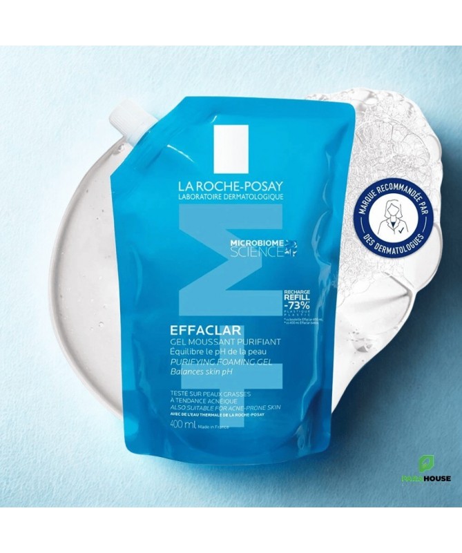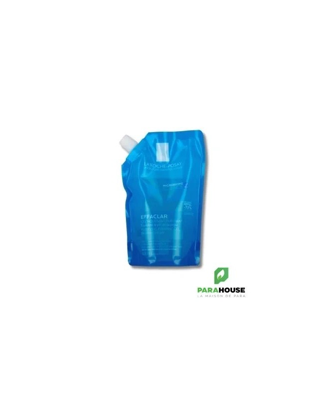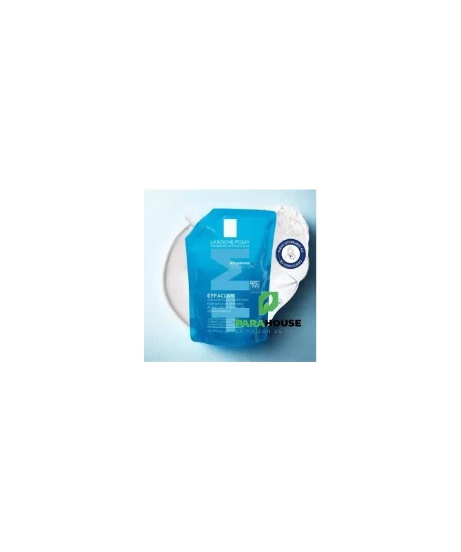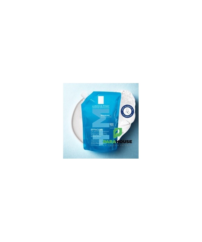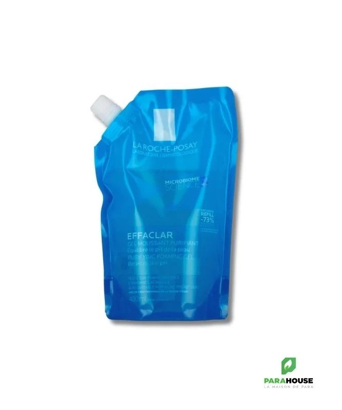 Description :Le Gel Moussant Purifiant Effaclar de La Roche-Posay nettoie et purifie en douceur. Il réduit les imperfections et la surproduction de sébum à la source. Rechargez votre flacon avec ce Gel Moussant Purifiant Effaclar en Eco-recharge.Il associe une technologie d'optimisation du pH avec un actif Phylobioma, contribuant à cibler une souche de la bactérie responsable des imperfections pour réduire visiblement les imperfections.Avec de l'eau thermale de La Roche-Posay apaisante et anti-irritante.Testé sur peaux grasses à tendance acnéique.Cette recharge permet d'économiser 73% de plastique.Fabriqué en France.Pour qui : Peaux grasses et sensibles à tendance acnéique.Résultats beauté : Votre peau est purifiée en douceur. Les imperfections sont réduites, laissant votre peau nette et fraîche.Actifs : Phylobioma, Zinc, Eau Thermale.On aime : Le format éco-recharge plus respectueux de l'environnement !Le Gel Moussant Purifiant Effaclar de La Roche-Posay nettoie et purifie en douceur. Il réduit les imperfections et la surproduction de sébum à la source.Sa formule, inspirée par la science du microbiome, associe une technologie d'optimisation du pH avec le nouvel actif Phylobioma, contribuant à cibler une souche de la bactérie responsable des imperfections pour les réduire visiblement.Sa formule est associée à l'Eau Thermale de La Roche-Posay, reconnue pour ses vertus apaisantes afin de limiter les risques d'irritations.En résultat, le Gel réduit visiblement les imperfections, les points noirs et les marques, désobstrue les pores et élimine l'excès de sébum en laissant la peau nette et fraîche.Le format Eco-recharge est plus respectueux de l'environnement avec -73%* de plastique. Rechargez votre flacon avec le Gel Moussant Purifiant Effaclar en Eco-recharge 400ml.Conseil D'utilisation :Prenez une petite quantité de nettoyant dans la main. Appliquez délicatement sur peau humide en effectuant de légers mouvements circulaires sur le front, le nez, le menton et le cou puis rincez abondamment.Évitez le contour des yeux. En cas de contact avec les yeux, rincez immédiatement et abondamment.Appliquez le matin et/ou le soir comme première étape de votre routine. Utilisez sur le visage avant d'appliquer le soin anti-imperfections Effaclar Duo+M.Composition :AQUA / WATER / EAU • SODIUM LAURETH SULFATE • PEG-8 • COCO-BETAINE • HEXYLENE GLYCOL • SODIUM CHLORIDE • PUNICA GRANATUM PERICARP EXTRACT • ZINC PCA • PEG-120 METHYL GLUCOSE DIOLEATE • SODIUM CITRATE • SODIUM HYDROXIDE • CAPRYLYL GLYCOL • CITRIC ACID • TRISODIUM ETHYLENEDIAMINE DISUCCINATE • MALTODEXTRIN • PENTYLENE GLYCOL • TOCOPHEROL • SODIUM BENZOATE • PHENOXYETHANOL • PARFUM / FRAGRANCE (F.I.L. N70028514/2).