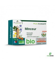 Description :Les 3 Chênes Phyto Aromicell'R Minceur Bio 20 Ampoules est un complément alimentaire à base de maté, pissenlit, chicorée et huile essentielle de mandarine rouge.Il utilise la technologie des micelles (agrégats de molécules amphiphiles) alimentaires qui permet d'associer une huile essentielle à des extraits aqueux de plantes. Cette innovation unique procure une double action synergique : flash, grâce à une huile essentielle et durable, grâce aux extraits de plantes.La chicorée contribue à la perte de poids dans le cadre d'un programme minceur.Conseils d'utilisation :Prendre 1 ampoule par jour, pure ou diluée dans un verre d'eau.Il est recommandé de prendre l'attache d'un professionnel de santé avant tout usage.Déconseillé aux enfants de moins de 6 ans, aux femmes enceintes et allaitantes.À utiliser dans le cadre d'une alimentation équilibrée et d'un mode de vie sain.Tenir hors de portée des jeunes enfants.Conserver à l'abri de la chaleur, de la lumière et de l'humidité.Composition :Eau, Extrait de feuille de maté* (Ilex paraguariensis), Extrait de parties aériennes de pissenlit* (Taraxacum officinalis), Sirop d'agave*, Extrait de racine de chicorée* (Cichorium intybus), Humectant : Glycérine*, Huile essentielle de mandarine rouge*.*Ingrédients issus de l'Agriculture Biologique.Apportspour 1 ampouleMaté : 500 mgPissenlit : 350 mgChicorée : 250 mgHuile essentielle de mandarine rouge : 20 mg