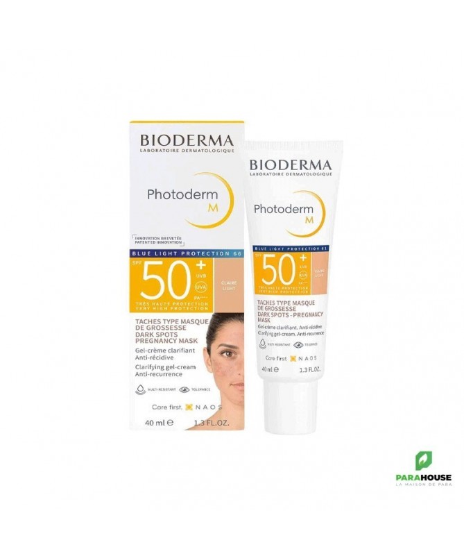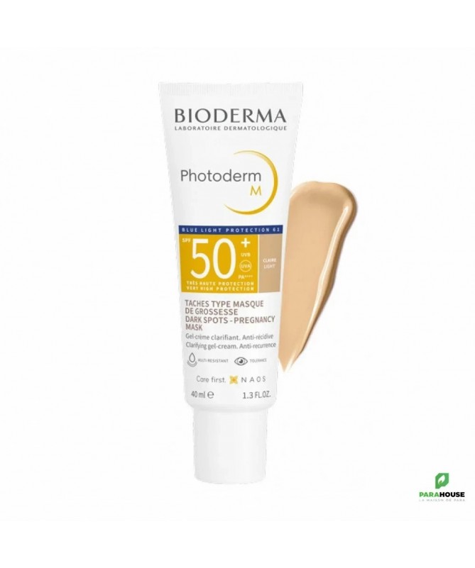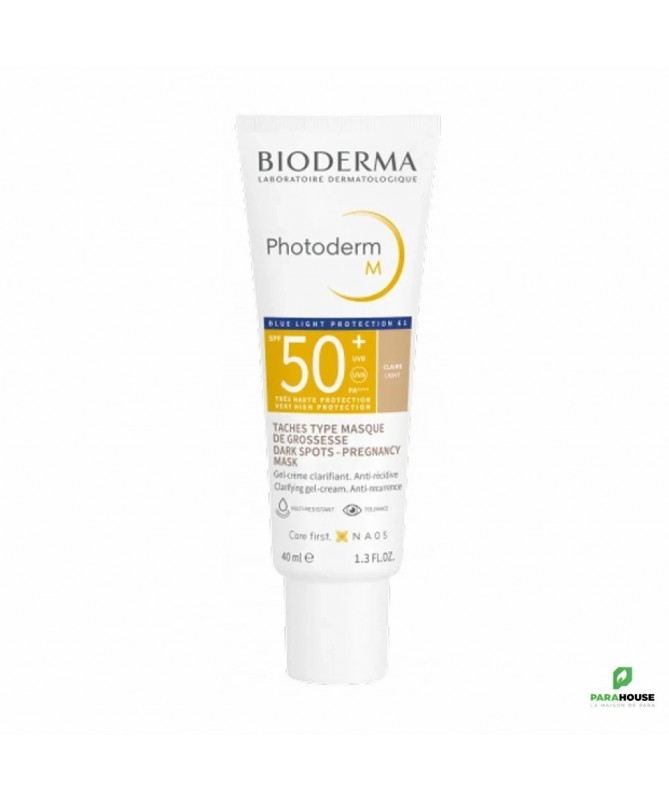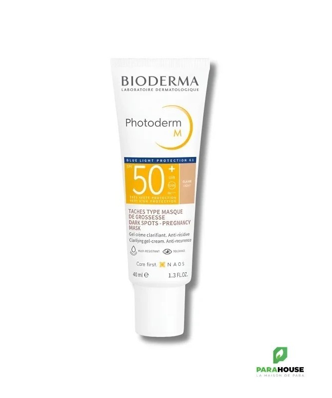 BIODERMA Photoderm M SPF50+ Teinte Claire 40ML BIODERMA Photoderm M SPF50+ ; Le teint clair, sans brillance excessive, éclaire naturellement le teint et le sublimera tout au long de la journée. Grâce à son indice de protection solaire SPF 50+, ce soin est hautement protecteur contre les rayons UVA et UVB. Il permet de retarder l’apparition des taches de dépigmentation, masque déjà les taches existantes et évite les rechutes. Photoderm M teinte aide à éviter la formation de taches de rousseur, réduit les décolorations existantes et la repigmentation. Elle permet de traiter la dépigmentation provoquée par la lumière bleue sur les peaux sensibles, par exemple le masque de grossesse Composition : AQUA/WATER/EAU OCTOCRYLENE DICAPRYLYL CARBONATE METHYLENE BIS-BENZOTRIAZOLYL TETRAMETHYLBUTYLPHENOL [NANO] BUTYL METHOXYDIBENZOYLMETHANE TITANIUM DIOXIDE (CI 77891) HYDROGENATED PALM KERNEL GLYCERIDES BIS-ETHYLHEXYLOXYPHENOL METHOXYPHENYL TRIAZINE BUTYLENE GLYCOL HYDROXYPROPYL DIMETHICONE BEHENATE POTASSIUM CETYL PHOSPHATE METHYLPROPANEDIOL CYCLOPENTASILOXANE GLYCERYL STEARATE PEG-100 STEARATE IRON OXIDES (CI 77492) DECYL GLUCOSIDE HYDROGENATED PALM GLYCERIDES CYCLOHEXASILOXANE PENTYLENE GLYCOL TOCOPHERYL ACETATE AMMONIUM ACRYLOYLDIMETHYLTAURATE/VP COPOLYMER XANTHAN GUM IRON OXIDES (CI 77491) DISODIUM EDTA IRON OXIDES (CI 77499) 1,2-HEXANEDIOL CAPRYLYL GLYCOL CITRIC ACID MANNITOL XYLITOL DISODIUM STEAROYL GLUTAMATE RHAMNOSE PROPYLENE GLYCOL ALUMINUM HYDROXIDE ECTOIN GLYCYRRHIZA GLABRA (LICORICE) ROOT EXTRACT TOCOPHEROL. [BI 711] Peut être utilisé chez les femmes enceintes et allaitantes Très bonne tolérance Non comédogène Résiste à l’eau Conseils d'utilisation: Il est conseillé d'appliquer Photoderm M teinte sur le visage le matin, après votre crème de jour. Il est recommandé de renouveler fréquemment l’application, avant et après chaque bain, frottement ou activité sportive.