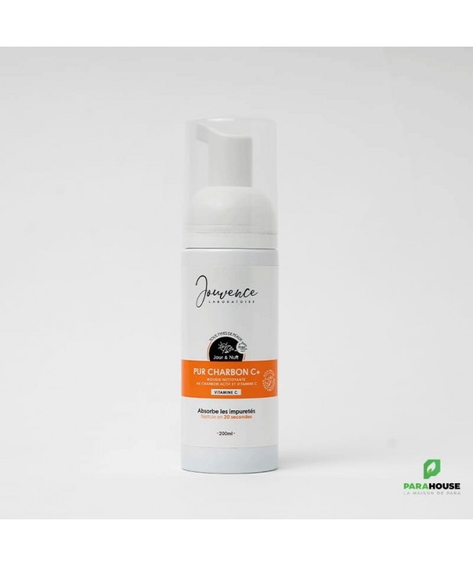JOUVENCE PUR CHARBON Mousse Nettoyante 150ML JOUVENCE PUR CHARBON Mousse Nettoyante est une mousse nettoyante au charbon actif et vitamine C qui absorbe les impuretés. Conseils d'utilisation : Utiliser le matin pour éliminer le sébum et les cellules mortes accumulés à la surface de l’épiderme durant la nuit Utiliser le soir pour débarrasser la peau des impuretés de la journée Composition : L’EXTRAIT CALENDULA (0.3%) pour ses propriétés adoucissantes et assouplissantes. Convient pour les peaux sèches et aussi pour les peaux fragiles et délicates. LE CHARBON ACTIF (0.18%) reconnu pour ses propriétés assainissantes et purifiantes. Il absorbe les impuretés et les toxines et redonne teint propre, unifié et purifié. Ingrédients (INCI) : Water, Magnesium laureth sulfate, Disodium laureth sulfosuccinate , Cocamidopropyl Betaine, Glycerol, PEG-7 Glyceryl cocoate, Phenoxyethanol, PEG-150 Pentaerythrityl Tetrastearate (and) Aqua (and) PEG-6 Caprylic/Capric Glycerides, Fragrance, Calendula officinalis flower extrac, Tetrasodium EDTA, Charcoal powder, Citric aci