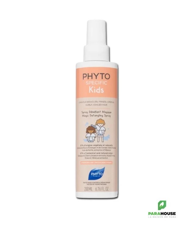 PHYTO KIDS SPRAY DEMELANT MAGIQUE 200ML PHYTO KIDS SPRAY DEMELANT MAGIQUE est conçu pour les cheveux bouclés, crépus et les cuirs chevelus sensibles des enfants, ce spray magique offre : Démêlage en un geste sans tirer ni alourdir Prévention des casses grâce à une action gainante Brillance naturelle sans résidus collants Texture légère : Non grasse, non collante, pénétration rapide Sans silicones Nourrit intensément les fibres capillaires sèches Lisse les écailles pour un glissage parfait du peigne Apporte souplesse aux boucles rebelles Composition : INGREDIENTS : AQUA / WATER / EAU. PROPANEDIOL. INULIN. GLYCERIN. POLYSORBATE 20. CAPRYLYL GLYCOL. PARFUM / FRAGRANCE. POLYQUATERNIUM-10. PANTHENOL. SODIUM BENZOATE. BUTYROSPERMUM PARKII (SHEA) BUTTER. MEL / HONEY / MIEL. PROPYLENE GLYCOL. CAPRYLHYDROXAMIC ACID. POLYQUATERNIUM-7. HIBISCUS SABDARIFFA FLOWER EXTRACT. LINALYL ACETATE. PRUNUS SERRULATA FLOWER EXTRACT. SORBITOL. BENZALDEHYDE. CITRUS AURANTIUM DULCIS (ORANGE) FLOWER EXTRACT. VANILLIN. POTASSIUM SORBATE. SODIUM CITRATE. CITRIC ACID. 892D. Conseils d'utilisation : Agiter le flacon de PHYTO KIDS SPRAY DEMELANT MAGIQUE Répartir généreusement sur l’ensemble des cheveux secs ou humides. Procéder au coiffage. Sans rinçage. En cas de contact avec les yeux, rincer abondamment.