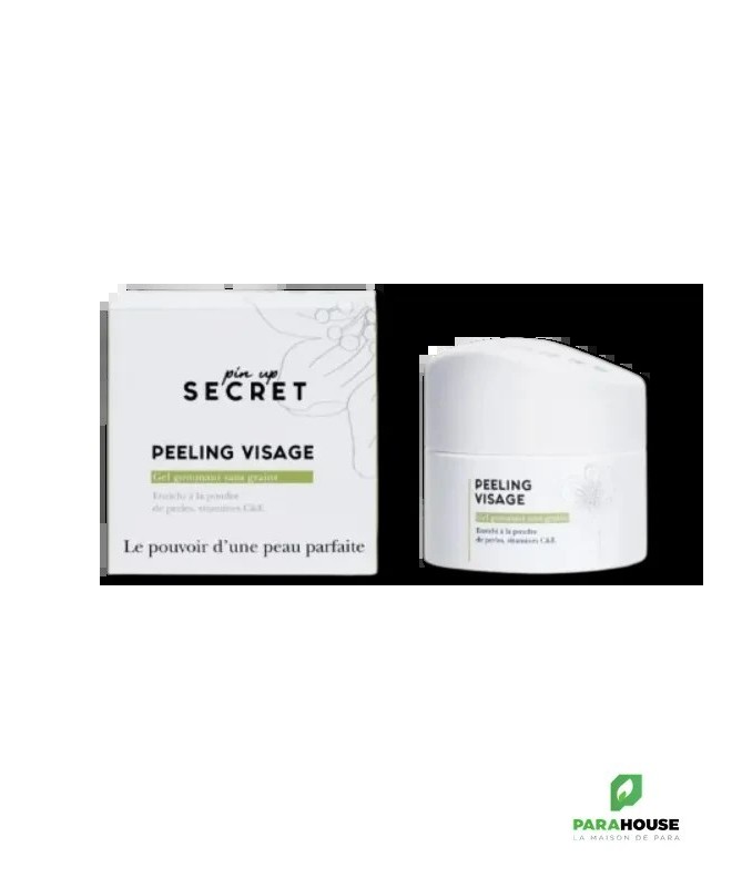 Le Peeling Visageest un gel gommant sans grains, idéal pour obtenir une peau saine et éclatante. Il nettoie en profondeur l'excès de sébum et l'épiderme du visage, réduisant ainsi les imperfections et resserrant les pores dilatés. Offrant un effet bonne mine, il redonne de l'éclat à la peau.Enrichi en poudre de perles et en vitamines C et E, le Peeling Visage permet de :Éliminer les cellules mortesRévéler une peau éclatante, douce et pleine de vitalitéAméliorer le teint terne et lisser le grain de peauCe gommage sans grains a une formule unique et innovante, adaptée à tous les types de peau, même les peaux sensibles et grasses. Il favorise le renouvellement cellulaire en exfoliant la peau du visage sans l'agresser, éliminant les cellules mortes qui ternissent le teint et révélant ainsi une peau lumineuse, douce et pleine de vitalité. En un seul geste, la peau est purifiée, hydratée et prête à mieux absorber les crèmes hydratantes, comme la Crème Sans Huile de la gamme Pin Up Secret. Le produit est présenté dans un contenant en verre.Conseils d'utilisation :Humidifiez votre visage nettoyé et appliquez le gel gommant sur le visage, le cou et le décolleté, en évitant le contour des yeux. Laissez poser pendant 1 à 2 minutes puis exfoliez doucement par des mouvements circulaires avec le bout des doigts. Rincez ensuite à l'eau tiède avant d'appliquer un masque ou la Crème Sans Huile.Conseil beauté :Pour un résultat optimal, utilisez le savon masque au lait de chèvre comme nettoyant visage avant l'application du Peeling Visage.