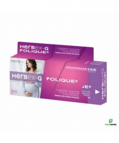 HERBEX-G FOLIQUE 1000 MCG 30 GELULES HERBEX-G FOLIQUE 1000 MCG est particulièrement adapté pour une supplémentation ciblée en acide folique en toute sécurité dés le désir de la grossesse et pendant toute la durée de grossesse et au cours de l’allaitement. L’acide folique (également connu sous le nom de vitamine B9 ou folate) est un nutriment qui aide à la croissance et au maintien des cellules. Cette vitamine favorise entre autres la croissance des tissus maternels et foetaux pendant la grossesse. Elle contribue au développement normal de la colonne vertébrale, du cerveau et du crâne du bébé à naître. Un apport suffisant en acide folique est essentiel chez toutes les femmes durant leur grossesse, et ce pourprévenir certaines anomalies congénitales telles que les suivantes : anomalies du tube neural (spina-bifida); cardiopathies congénitales (problèmes de coeur); anomalies des voies urinaires; anomalies des membres; fentes orofaciales (ex. : bec-de-lièvre et/ou fente palatine). Les facteurs suivants ont été associés à un risque plus élevé d’anomalie du tube neural (ATN) : ATN chez l’embryon lors d’une grossesse précédente; antécédents familiaux d’ATN (du côté de la mère ou du père); diabète; épilepsie; obésité; alcoolisme et toxicomanie; prise de certains médicaments; Composition :