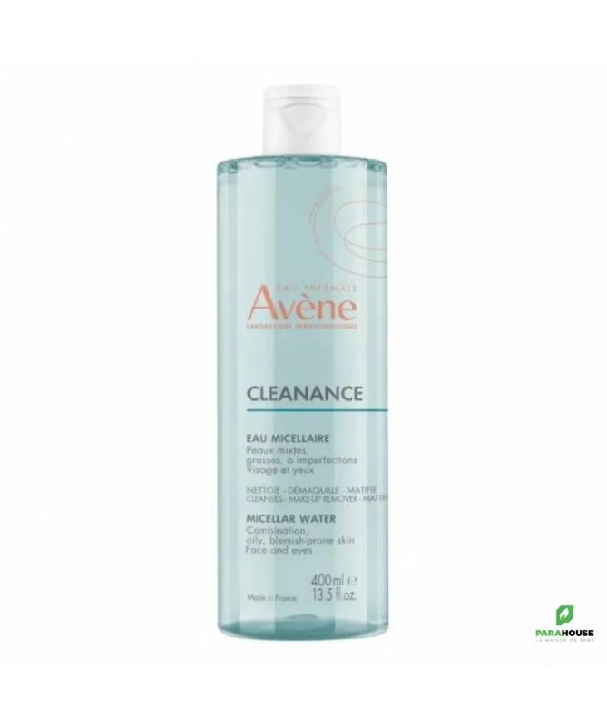 AVENE CLEANANCE EAU MICELLAIRE 400ML AVENE CLEANANCE EAU MICELLAIRE permet d'eliminer en douceur et sans rinçage les impuretés du visage et des yeux, y compris le maquillage. NETTOYANTE, DÉMAQUILLANTE : Ses tensioactifs éliminent efficacement et en douceur les impuretés du visage et des yeux, y compris le maquillage. MATIFIANTE : La Monolaurine (brevet déposé) aide à diminuer l’excès de sébum. APAISANTE : L'Eau thermale d'Avène restitue toutes ses propriétés apaisantes et anti-irritantes. La peau est nette, fraîche et purifiée. Composition : AVENE THERMAL SPRING WATER (AVENE AQUA). GLYCERIN. PENTYLENE GLYCOL. COCO-GLUCOSIDE. ETHYL LAUROYL ARGINATE HCL. FRAGRANCE (PARFUM). GLUTAMIC ACID. POLYGLYCERYL-4 CAPRATE. POLYGLYCERYL-6 CAPRYLATE. SODIUM HYDROXIDE. WATER (AQUA) Conseils d'utilisations: Il est recommandé d'appliquer AVENE EAU MICELLAIRE matin et/ou soir sur le visage et les yeux à l’aide d’un coton avant de pulvériser, si nécessaire, une fine brume d’Eau thermale d’Avène. Il est conseillé d'appliquer ensuite le produit de soin Expert Cleanance ou Triacnéal.