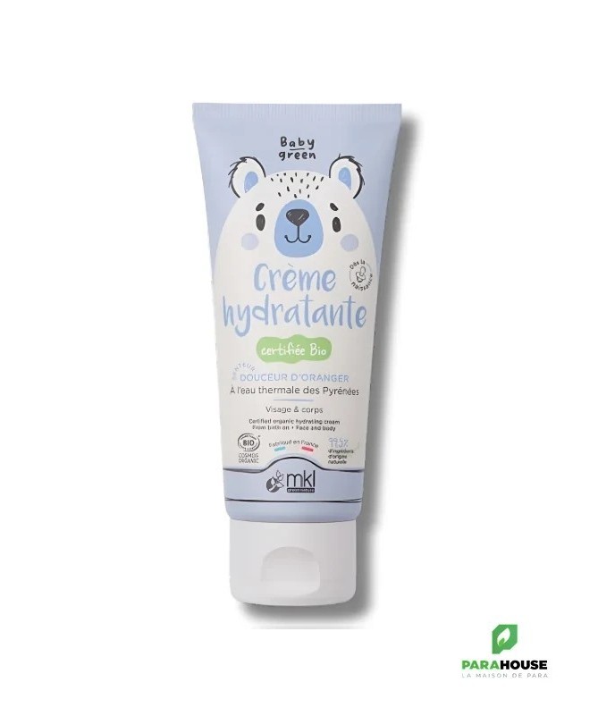 Enrichie en eau thermale des Pyrénées et huile de coco, cette crème hydratante naturelle offre une hydratation optimale à la peau sensible de bébé. Composée à 99,9% d’ingrédients d’origine naturelle, elle nourrit et apaise la peau délicate tout en laissant une texture légère et douce qui pénètre facilement.Certifiée bio, cette crème enveloppe la peau de bébé avec douceur, comme un tendre câlin.Ingrédients :AQUA (WATER), GLYCERIN, COCOS NUCIFERA (COCONUT) OIL*, BUTYROSPERMUM PARKII (SHEA) BUTTER*, CETYL ALCOHOL, SESAMUM INDICUM (SESAME) SEED OIL*, HELIANTHUS ANNUUS (SUNFLOWER) SEED OIL*, C14-22 ALCOHOLS, XANTHAN GUM, CALENDULA OFFICINALIS FLOWER EXTRACT*, ALOE BARBADENSIS LEAF JUICE POWDER*, AQUA (THERMAL WATER), MENYANTHES TRIFOLIATA LEAF EXTRACT, PARFUM (FRAGRANCE), CAPRYLYL GLYCOL, XYLITYLGLUCOSIDE, C12-20 ALKYL GLUCOSIDE, ANHYDROXYLITOL, TOCOPHEROL, XYLITOL, GLUCOSE, CITRIC ACID, PENTYLENE GLYCOL, SODIUM BENZOATE, LINALOOL, LIMONENE, CITRONELLOL.*Ingrédients issus de l’agriculture biologique.99,9% du total est d’origine naturelle. 32,5% des ingrédients proviennent de l’agriculture biologique.COSMOS ORGANIC certifié par ECOCERT Greenlife selon le référentiel COSMOS.Les compositions peuvent évoluer, veuillez consulter l’emballage avant utilisation.Conseils d’utilisation :Appliquer sur visage et corps sur peau propre et sèche, masser délicatement jusqu’à absorption complète. Usage externe, sans rinçage.
