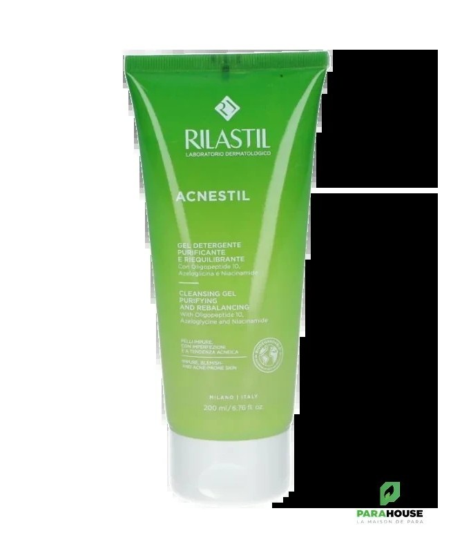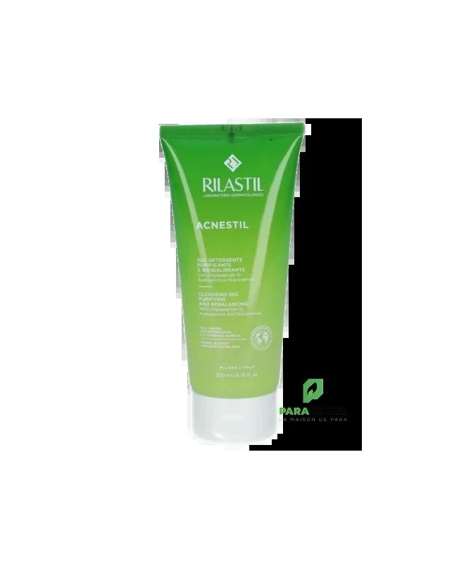 Le Gel Nettoyant Rilastil Acnestil est spécialement conçu pour les peaux à tendance acnéique. Ce gel purifie en profondeur tout en préservant l'équilibre naturel de la peau. Il aide à éliminer les impuretés, réduit l'excès de sébum et limite l'apparition des imperfections. Sa formule douce et efficace convient à un usage quotidien, même pour les peaux les plus sensibles.Grâce à une combinaison d'actifs purifiants et apaisants, ce gel nettoie la peau tout en prévenant les irritations et les sensations de tiraillement. Il laisse la peau propre, fraîche et matifiée.Indications :- Peaux à tendance acnéique- Peaux sujettes aux imperfections- Adultes et adolescents- Pour le visageConseils d’utilisation :Appliquez une petite quantité de gel sur peau humide. Massez délicatement en effectuant des mouvements circulaires, puis rincez abondamment à l’eau tiède. Utilisez matin et soir pour un nettoyage optimal.Précautions d'emploi :Évitez le contact avec les yeux. En cas de contact, rincez abondamment à l’eau claire.- Composition :Aqua (Water), Glycerin, Sodium Chloride, Sodium Lauryl Sulfate, Sodium PCA, Salicylic Acid, Benzyl Alcohol, Citric Acid, Parfum (Fragrance), et autres agents purifiants et apaisants.