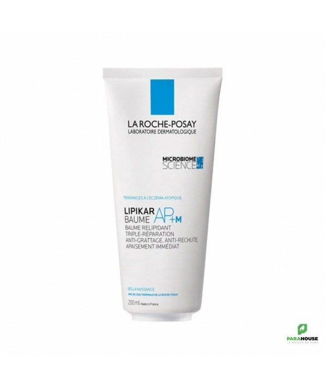 LA ROCHE POSAY LIPIKAR BAUME AP+M TRIPLE REPARATION 200ML LA ROCHE POSAY LIPIKAR BAUME AP+M TRIPLE REPARATION est un baume relipidant triple-réparation pour agir contre la sécheresse sévère du nouveau-né à l'adulte. Le baume relipidant Lipikar AP+M est une crème hydratante corps conçue pour les peaux sèches à très sèches et à tendance atopique de toute la famille. Sa formule contient du beurre de karité, de l'Aqua Posæ Filiformis, du Microrésyl, de la niacinamide, de la glycérine et de l'eau thermale La Roche-Posay qui rééquilibrent le microbiome cutané et aide à espacer les pics de sécheresses sévères. La peau est instantanément apaisée, confortable et protégée. Les sensations de grattage sont immédiatement atténuées, pour un bien-être durable. Problèmes ciblés : eczéma atopique Irritations Démangeaisons Type de peau : Peaux sèches à tendance à l'eczéma atopique Convient aux peaux sensibles Âge : Convient aux nourrissons, enfants et adultes Composition : Aqua/Water, Butyrospermum Parkii Butter/Shea Butter, Glycerin, Dimethicone, Niacinamide, Cetearyl Alcohol, Brassica Campestris Seed Oil/Rapeseed Seed Oil, Glyceryl Stearate, Ammonium Polyacryloyldimethyl Taurate,, PEG-100 Stearate, Propanediol, Ophiopogon Japonicus Root Extract, PEG-20 Methyl Glucose Sesquistearate, Sorbitan Tristearate, Dimethiconol, Sodium Chloride, Mannose, Coco-Betaine, Disodium EDTA, Capryloyl Glycine, Caprylyl Glycol, Vitreoscilla Ferment, Citric Acid, Maltodextrin, Xanthan Gum, Tocopherol, Pentaerythrityl Tetra-Di-T-Butyl Hydroxyhydrocinnamate. Conseils d'utilisation : Appliquer une fois par jour sur le visage et le corps.