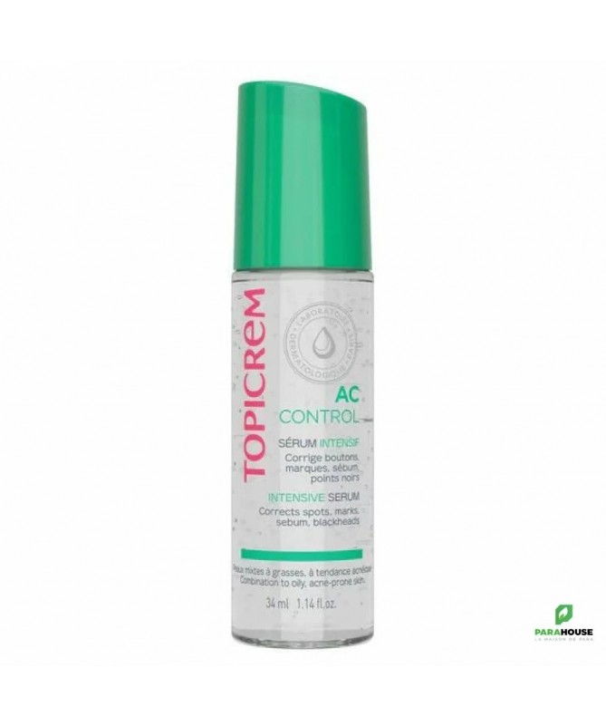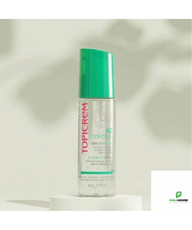 TOPICREM AC CONTROL SERUM INTENSIF 34ML Formulé à base d'Acide succinique et de Gluconate de Zinc pour une efficacité haute tolérance, AC CONTROL Sérum Intensif anti-imperfection corrige, lisse et purifie la peau pour des résultats visibles dès 2 nuits*. Sa texture transparente est ultra-fraîche et très facile à appliquer. Notre sérum anti-imperfection dépose un doux parfum floral-musqué et laisse la peau douce et nette. Résultats visibles dès 2 nuits : -28% Imperfections Résultats visibles dès 28 nuits : -68% Imperfections Composition : AQUA (WATER) . GLYCERIN . PROPANEDIOL . NIACINAMIDE . SUCCINIC ACID . 1,2-HEXANEDIOL . ZINC GLUCONATE . SODIUM HYDROXIDE . POLYGLYCERYL-10 EICOSANEDIOATE/TETRADECANEDIOATE . XANTHAN GUM . CHLORPHENESIN . SODIUM HYALURONATE . MALTODEXTRIN . BIXA ORELLANA SEED EXTRACT . PARFUM (FRAGRANCE) Testé sous contrôle dermatologique Non comédogène. Conseils d'utilisation : PRÉPARER : Le soir, prélever 1 noisette de produit dans la paume de la main. Chauffer le sérum en pressant entre les 2 paumes. DÉPOSER : Déposer le sérum sur le front & le menton, sur les joues, et finir avec le cou. APPLIQUER : Exercer des pressions drainantes (massantes) sur les joues, le front, le menton, et sur les 2 côtés du cou. Ne pas appliquer sur peau lésée