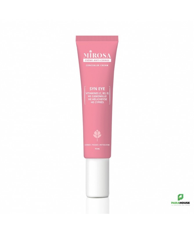MIROSA CREME ANTI CERNES 15ML MIROSA CREME ANTI CERNES est recommandée pour les yeux sensibles ou allergiques afin d’atténuer les cernes et les signes de fatigue. Grâce à sa composition riche en huiles essentielles, actifs et vitamines, MIROSA CREME ANTI CERNES : Eclaircit les cernes. Corrige et estompe les cernes, les poches et les rides sous les yeux. Composition : AQUA (purified water), PRUNUS AMYGDALUS DULCIS OIL, ROSA CANINA SEED OIL, HELICHRYSUM ITALICUM FLOWER OIL, CHAMOMILLA RECUTITA FLOWER OIL, CUPRESSUS SEMPERVIRENS LEAF OIL, SYNEYE, NIACINAMIDE, ASCORBYL GLUCOSIDE (vitamine c), GLYCERYL STEARATE, XANTHAN GUM, TOCOPHEROL, sodium benzoate, potassium sorbate. Conseils d'utilisation : Appliquer délicatement matin et soir par massage circulaire autour de l’oeil. Tapoter légèrement pour stimuler la circulation et favoriser la pénétration. Ne convient pas aux femme enceintes et allaitantes. Eviter l’exposition au soleil. Usage externe.