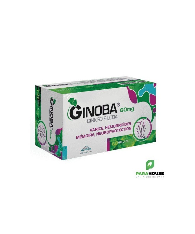 GINOBA avec sa formule à base de Ginkgo Biloba qui facilite la dilatation des vaisseaux sanguins et favorise une bonne circulation sanguineLa dose journalière recommandée varie de 120 mg à 240 mg par jour, soit 2 à 4 gélules à répartir en 2 ou 3 prises (par jour) avec un grand verre d’eau au moment du repas.Ginoba peut être indiqué pour:Les troubles liés à une insuffisance circulatoire périphérique artérielle, veineuse et capillaire :Artérites entrainant boiterie et claudication intermittente, jambes lourdes, varices, œdèmes des membres inférieurs, hémorroïdes, maladie de Raynaud (extrémités froides)Les troubles liés à une insuffisance circulatoire cérébrale:Perte de mémoire, diminution de la concentration, vertiges, maux de tête, baisse d’audition, bourdonnements d’oreilles, acouphènes, démence sénile, maladie d’AlzheimerRenforcer les fonctions cérébrales :Stimule la mémoire, aide à la concentration et au raisonnement.Améliorer les fonctions cognitives et ralentir leur déclin avec l’âge.Réduire les troubles du comportement et de la mémoire liés au vieillissement.Diminuer les vertiges, les bourdonnements d’oreilles, et les baisses de l’audition d’origine vasculaire.Soulager les troubles de la vue d’origine vasculaire.