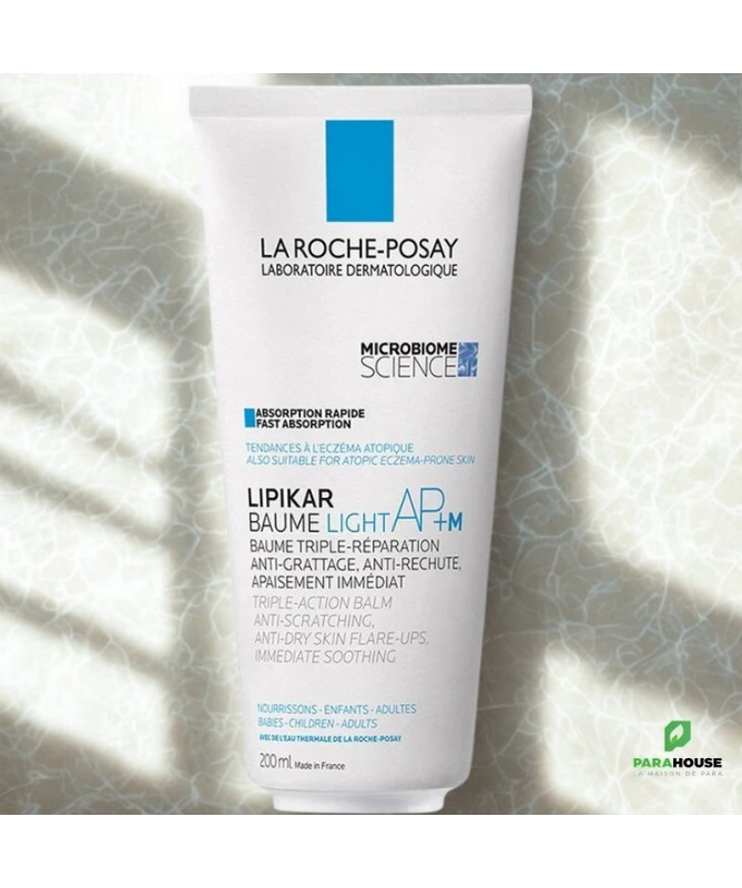 LA ROCHE POSAY LIPIKAR Baume Light AP+M 200ML LA ROCHE POSAY LIPIKAR Baume Light AP M est un soin hydratant qui calme et soulage les démangeaisons et les irritations des peaux atopiques, sensibles, très sèches et irritées. AVANTAGES : Convient à toute la famille : bébés, enfants et adultes. Indiqué pour le visage et le corps. Adoucit immédiatement et rompt le cercle vicieux du grattage cutané pour retrouver un confort durable. Apaise la peau des démangeaisons. Efficace jusqu'à 24 heures. Prévient la réapparition des poussées de sécheresse sévère. Procure un soulagement durable et rompt le cercle vicieux des démangeaisons pour restaurer le confort de la peau. Formulé avec du Niacinamide, pour lutter contre les irritations et restaurer la barrière cutanée ; et du Beurre de Karité (20%) et de l'huile de Colza, riche en Oméga 3 et 6, qui restaure le film hydrolipidique, l'élasticité et la douceur de la peau. Jour après jour, la peau paraît plus douce et plus lisse et retrouve un relief durable. Nouvelle texture, elle est rapidement absorbée. Écrémé. pas collant Composition : Aqua/water/eau; glycerin, isopropyl palmitate, butyrospermum parkii butter/shea butter, propanediol, cetyl alcohol, myristyl myristate, zea mays starch/corn starch, niacinamide, ophiopogon japonicus root extract, carbomer, sodium hydroxide, mannose, hydroxyacetophenone, caprylyl glycol, vitreoscilla ferment, citric acid, maltodextrin, polyglyceryl-3 methylglucose distearate, tocopherol. Conseils d'utilisation : Appliquer LA ROCHE POSAY LIPIKAR Baume Light AP M une fois par jour. Visage et corps. Sous la douche, nous recommandons l'usage des produits relipidants Lipikar syndet AP+ ou Lipikar huile lavante AP+ pour apaiser les démangeaisons dans la journée.