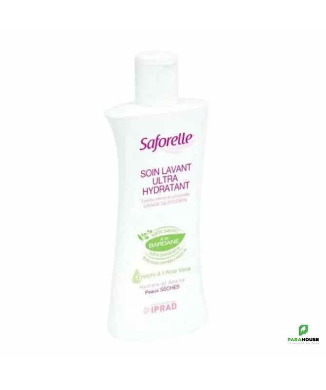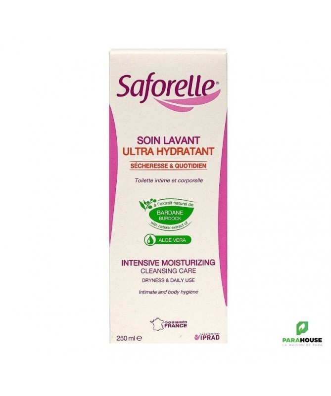 SAFORELLE SOIN LAVANT ULTRA HYDRATANT 250ML SAFORELLE SOIN LAVANT ULTRA HYDRATANT nettoie en douceur, hydrate et apaise les peaux sèches. Il est spécialement formulé sans savon pour les femmes présentant des signes de sécheresse intime, pouvant être dus à la prise de certains médicaments, à une variation hormonale comme celle liée à la ménopause … Grâce à sa formule alliant agents surgras, extraits naturels d’Aloe Vera et de Bardane, le soin lavant intime participe à une meilleure hydratation intime, source de confort, et permet une toilette quotidienne en douceur. SAFORELLE SOIN LAVANT ULTRA HYDRATANT a été testé sous contrôle médical par des gynécologues et des dermatologues. Composition : Ingrédients : Aqua, Cocamidopropyl Betaine, Glycerin, PEG-6 Caprylic/Capric Glycerides, Sodium Cocoamphoacetate, Laureth-2, PEG/PPG-120/10 Trimethylolpropane Trioleate, Acrylates Copolymer, Lauryl Glucoside, Aloe Barbadensis Leaf Juice, Xylitylglucoside, Hydroxyacetophenone, Parfum, Cocamide MEA, Anhydroxylitol, Sodium Cocoyl Glutamate, Sodium Lauryl Glucose Carboxylate, Sodium Hydroxide, Styrene/Acrylates Copolymer, Xylitol, Sodium PCA, Disodium EDTA, Coco-Glucoside, Citric Acid, Arctium Lappa Root Extract, Sodium Lauryl Sulfate, Sodium Benzoate, Benzoic Acid, Potassium Sorbate. Conseils d'utilisation : Le Soin Lavant Ultra Hydratant Saforelle s’utilise comme un gel lavant liquide sur la peau et/ou la zone intime. Faire mousser puis rincer abondamment à l’eau claire. Formulé pour un usage quotidien, il est particulièrement recommandé en période de sécheresse intime. Eviter le contact avec les yeux.
