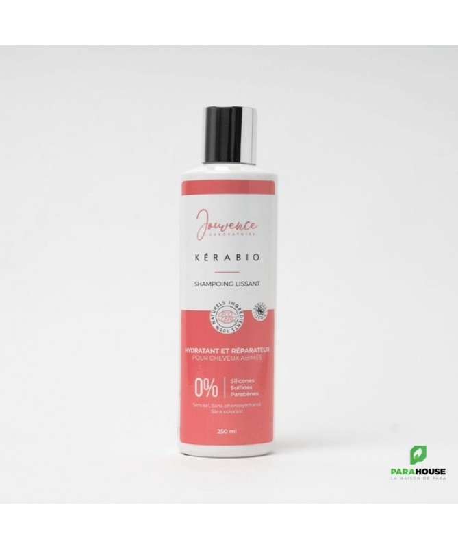 Description :Le Shampooing Lissant Jouvence Kerabio est un soin capillaire formulé spécialement pour les cheveux abîmés, afin de leur offrir une réparation en profondeur tout en préservant leur hydratation naturelle. Grâce à une composition 100% d'ingrédients naturels certifiés Ecocert, il apporte à vos cheveux la douceur et la brillance qu'ils méritent, tout en les protégeant des agressions extérieures.Jouvence Kerabio Shampooing Lissant est conçu avec une philosophie respectueuse de votre santé et de l'environnement. Il est exempt de silicones, sulfates, parabènes, sel, phenoxyéthanol et colorants, garantissant une formulation douce et pure pour vos cheveux et votre cuir chevelu. Ce soin est adapté aux besoins des enfants ainsi que des femmes enceintes, ce qui en fait un choix sûr et agréable pour toute la famille.Hydrate et répare en profondeur les cheveux abîmés.Formule 100% naturelle certifiée Ecocert, respectueuse de la peau et de l'environnement.Sans silicones, sulfates, parabènes ni colorants, pour un soin doux et sûr.Convient aux enfants, aux femmes enceintes et testé sans cruauté.Grâce à son action réparatrice, ce shampooing pénètre en profondeur dans la fibre capillaire pour nourrir les cheveux abîmés, leur redonner de la souplesse et de l'élasticité. Il hydrate intensément, rendant les cheveux plus doux et plus faciles à coiffer.Conseils D'utilisation :Appliquez généreusement le shampoing sur cheveux mouillés, massez doucement puis rincez abondamment à l’eau tiède.Composition :(INCI) : AQUA, COCO-BETAINE, CAPRYLYL/CAPRYL GLUCOSIDE, SODIUM COCO GLUCOSIDE TARTRATE, C15-19 ALKANE, XYLITYLGLUCOSIDE (AND) ANHYDROXYLITOL (AND) XYLITOL, BUTYROSPERMUM PARKII BUTTER*, COCOS NUCIFERA OIL, PERSEA GRATISSIMA (AVOCADO) OIL, C14-22 ALCOHOLS (AND) C12-20 ALKYL GLUCOSIDE, TOCOPHEROL, XANTHAN GUM, BENZOIC ACID, DEHYDROACETIC ACID, BENZYL ALCOHOL, CETEARYL ALCOHOL, KERATIN, PARFUM, HYALURONIC ACID.