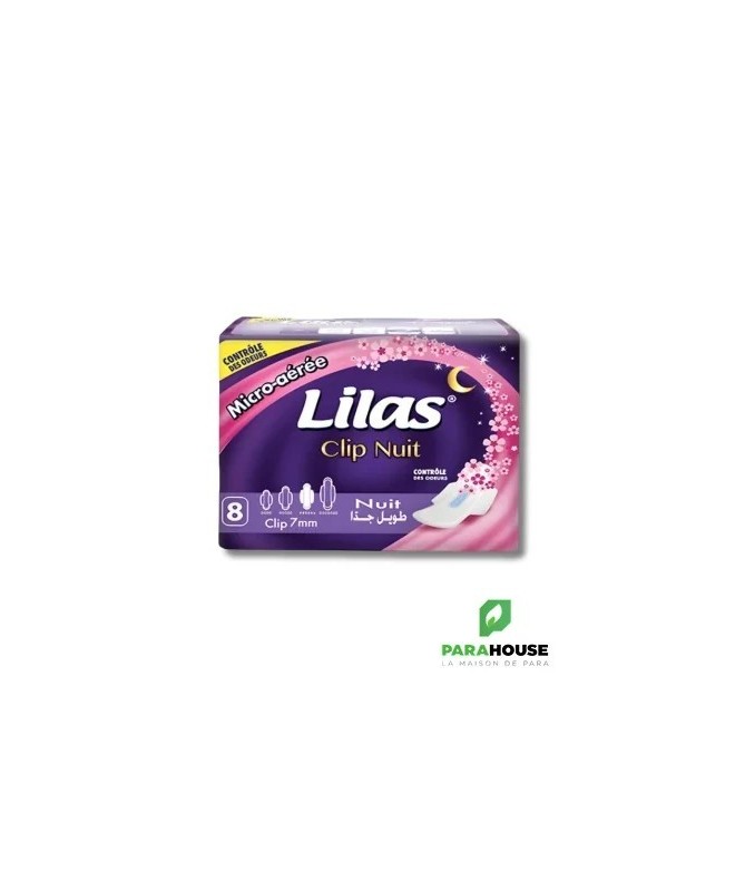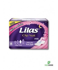 Serviettes Hygiéniques LILAS Clip Pocket NuitLes serviettes hygiéniques LILAS Clip Pocket Nuit sont spécialement conçues pour une protection optimale pendant la nuit. Leur design mince et compact les rend discrètes et faciles à transporter.Caractéristiques :- Design mince: Un ajustement confortable et discret pour toute la nuit.- Protection pour la nuit: Une protection renforcée pour un sommeil paisible et serein.- Clip intégré: Permet de maintenir la serviette en place, évitant ainsi tout déplacement durant la nuit.- 8 pièces par paquet: Un paquet contient 8 serviettes, offrant une utilisation prolongée.Ces serviettes offrent à la fois confort, protection et discrétion, idéales pour les nuits sereines.