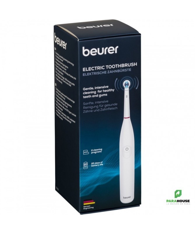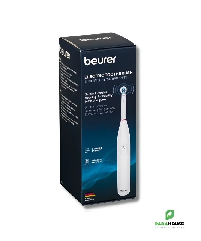 BEURER TB 30 Brosse a Dents Electrique BEURER TB 30 Brosse a Dents Electrique vous permet de nettoyer vos dents grâce à une technologie oscillante et pulsée. Le minuteur de 2 minutes vous aide à nettoyer suffisamment longtemps. Avec sa batterie d’une autonomie allant jusqu’à 20 jours, le brossage des dents est un jeu d’enfant, même en déplacement. 2 programmes de nettoyage individuels Batterie puissante dotée d’une autonomie de 20 jours Technologie de brossage oscillante et pulsée pour l’élimination de la plaque 2 programmes de nettoyage individuels : Clean, Sensitive Minuteur 2 minutes intégré Batterie puissante dotée d’une autonomie de 20 jours Voyant LED de charge Comprend une station de charge inductive, un câble de charge USB avec adaptateur et une tête de brosse à dents Clean