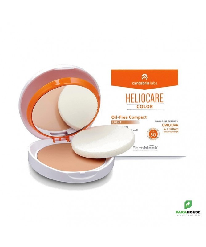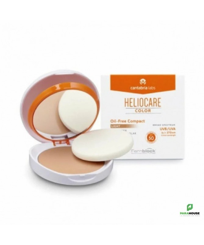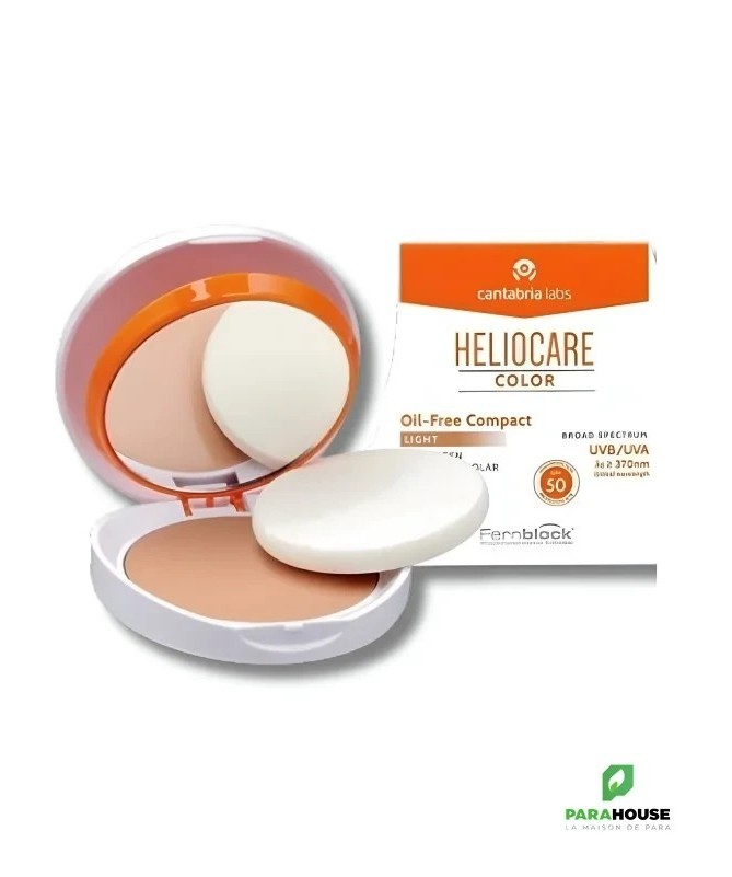 HELIOCARE Compact SPF50 OIL FREE - LIGHT 60ML HELIOCARE Color Compact Oil Free SPF 50 , pour les peaux normales à grasses et sujettes à l'acné permet d'empêcher le photovieillissement et couvrer les imperfections en même temps contribue à un effet maquillage avec un teint uniforme Disponible en deux teintes: Fair, Light. Grâce à Fernblock avec sa combinaison de filtres de technologie avancée et ses antioxydants actifs, HELIOCARE Color Compact OIL FREE prévient et répare les dommages solaires corrigeant les signes visibles du photovieillissement heliocare compact oil free s'adapte à tous types de peaux Photoprotection élevée avec des antioxydants actifs et des agents de restauration qui offre une couverture pleine couleur pour les imperfections et unifie le teint. Protège et applique le maquillage en un seul geste. Finition mate et légère. Formule sans huile. LES INDICATIONS Photoprotection à usage quotidien avec des couleurs qui évite le photovieillissement, les imperfections, les hyperpigmentations cutanées, la protection en cas de peaux réactives, photosensibles ou photosensibilisées à la suite des traitements, couvre les imperfections et unifie le teint. Peaux normales à sèches. Composition: Fernblock Thé vert Conseils d'Utilisation: Il est recommandé d'Appliquer HELIOCARE Color Compact OIL FREE SPF50 uniformément à l'aide d'une éponge en tamponnant doucement. Renouveler l'application pendant la journée.