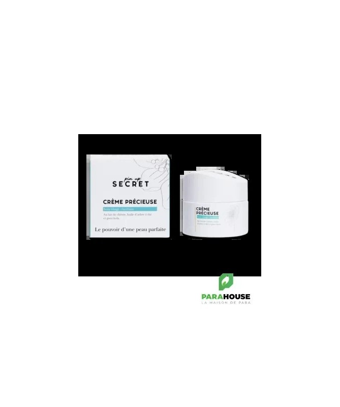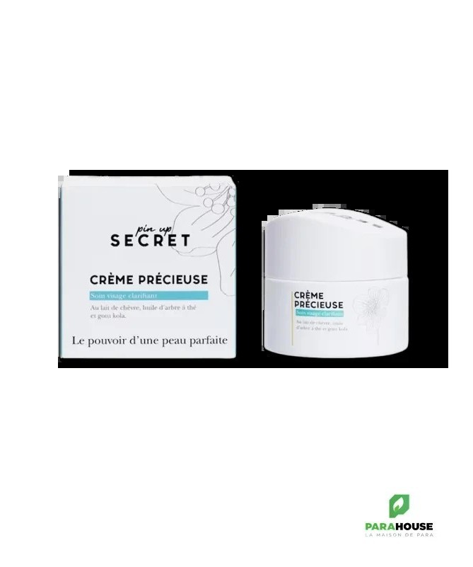 Crème Précieuse au Lait de ChèvreLa Crème Précieuse au lait de chèvre de Pin Up Secret est un soin quotidien pour les peaux à problèmes. Ce trésor de beauté agit au cœur des imperfections, pour un teint zéro défaut, laissant la peau lisse, unifiée et sans imperfections.Bénéfices :Hydrate et purifie la peau. Elle oxygène la peau, régule l'excès de sébum, lisse le grain de peau, offre une action apaisante et anti-inflammatoire, et constitue un soin clarifiant pour le visage. Elle est idéale pour les peaux irritées et à problèmes.Ingrédients principaux :Lait de chèvre :Les protéines du lait de chèvre ont une action anti-microbienne. L'acide lactique qu'il contient élimine les impuretés. L'acide caprylique aide à équilibrer le pH. Le lait de chèvre est également riche en acides gras, vitamines et minéraux.Gotu Kola :Le gotu kola, ou "arbre à tigre", est une plante médicinale utilisée dans la médecine traditionnelle chino