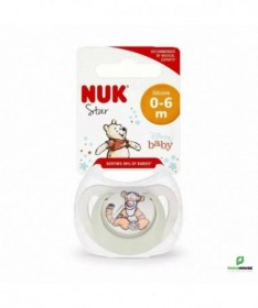 NUK SUCETTE STAR DISNEY 0-6M - 10730905 NUK SUCETTE STAR DISNEY est une sucette avec silicone doux, sans BPA, design ludique et confort optimal pour bébé. 100% sans BPA, testée sous contrôle pédiatrique. Idéale pour apaiser bébé en toute sécurité Silicone ultra-doux pour un confort optimal. Design Disney amusant pour apaiser bébé. Forme orthodontique soutenant la croissance bucco-dentaire. Sans BPA et résistante à la chaleur.