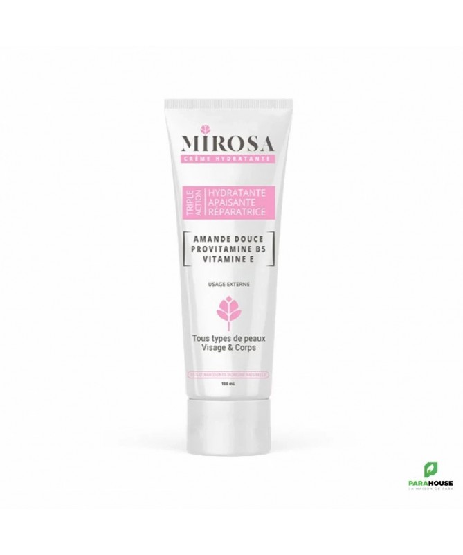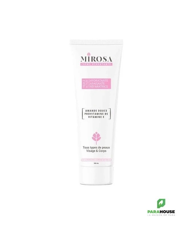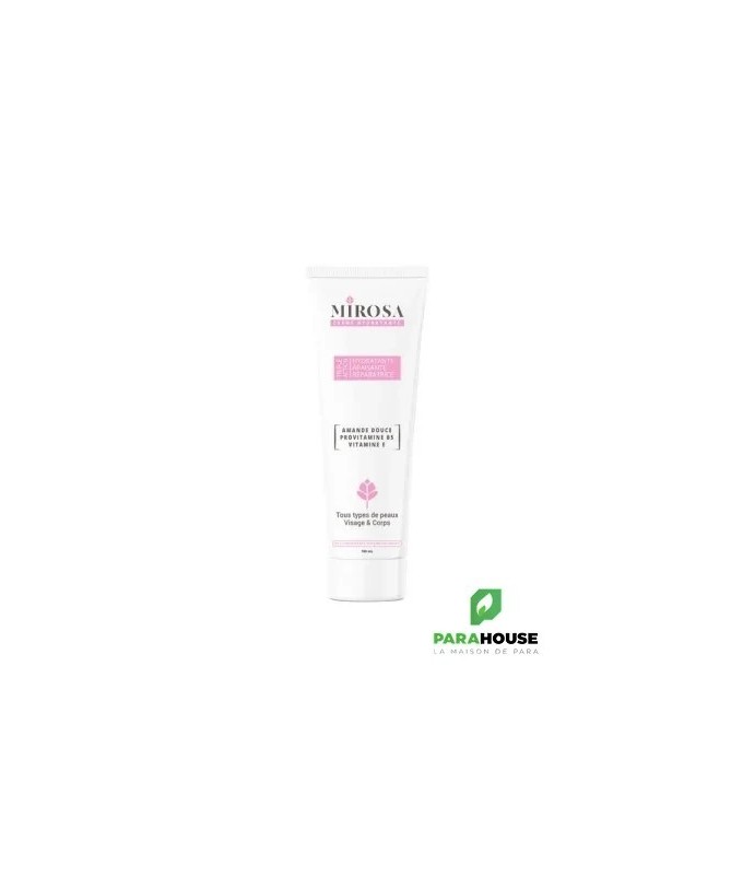 MIROSA CREME HYDRATANTE 100ML MIROSA CREME HYDRATANTE est douce et riche, efficace dans le traitement de la sécheresse cutanée, elle pénètre immédiatement sans fini gras. Cette crème prévient la déshydratation, apaise et protège la peau de la pollution et contribue à l’entretien de la barrière cutanée. Pour visage et corps Conseils d'utilisation : Appliquer MIROSA CREME HYDRATANTE en fine couche sur une peau propre et sèche une à deux fois par jour. Masser pour faire pénétrer. Eviter le contact avec les yeux. Usage externe