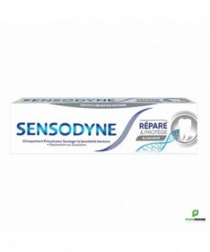 Sensodyne Répare & Protège Blancheur Notre nouveau dentifrice blanchissant Sensodyne Repair & Protect forme une couche protectrice solide autour des zones affaiblies de tes dents sensibles qui peuvent entraîner des caries. Cette formule NOVAMIN unique est cliniquement prouvée pour aider à réparer ces zones affaiblies avec les constituants naturels de tes dents et soulager la douleur causée par la sensibilité. Elle aide à blanchir les dents en éliminant les taches de surface et reconstruit réellement l'émail pour révéler un sourire brillant et sain. Retournez savourer tes aliments et tes boissons préférés sans douleur ! Composition : NOVAMIN (phosphosilicate de calcium et sodium) et fluorure de sodium (1450 ppm). Agit par obturation des tubuli dentinaires. À conserver à une température inférieure à 30°C. Conseils d'utilisation : Il est recommandé de se brosser les dents deux fois par jour, et de ne pas dépasser trois brossages.