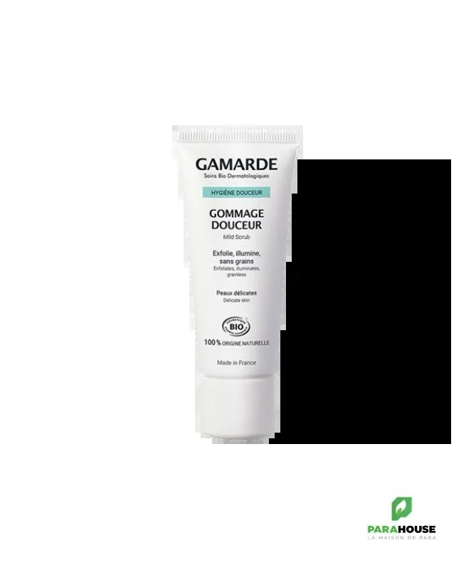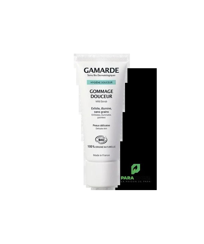 GAMARDE Gommage Douceur 40ML - Exfoliant visage sans grains GAMARDE Gommage Douceur à base de cellulose végétale, enrichi en l’Huile d’Argan Bio et en Eau Thermale de Gamarde-les-Bains dermo-protectrice, exfolie en douceur sans agresser. Votre teint est lumineux, votre peau est fraiche et douce. Composition : INGREDIENTS : Aqua (Water), Helianthus annuus (Sunflower) seed oil*, cellulose, cetearyl alcohol, Argania spinosa kernel oil*, cetearyl glucoside, Gamarde aqua (Gamarde Water), Lavandula hybrida (Lavandin) oil*, Citrus limon (Lemon) peel oil*, Eugenia caryophyllus (Clove) bud oil*, parfum (Fragrance), phenethyl alcohol, citric acid, citral°, citronellol°, coumarin°, eugenol°, geraniol°, limonene°, linalool°. *ingrédient d’origine Biologique °ingrédients naturellement présent dans les huiles essentielles 100% des ingrédients sont d’origine naturelle 16% sont issus de l’Agriculture Biologique 45% des ingrédients hors eau et minéraux sont issus de l’Agriculture Biologi Conseils d'utilisation : Convient pour : Peau Délicate, Tous Types de Peaux Appliquer une fine couche de GAMARDE Gommage sur l’ensemble du visage, des paupières, des lèvres et du cou, laisser poser 5 minutes. Gommer avec la pulpe des doigts de l’intérieur vers l’extérieur du visage, rincer. Pour un confort maximum, appliquer une serviette humide et tiède sur le visage et le cou.