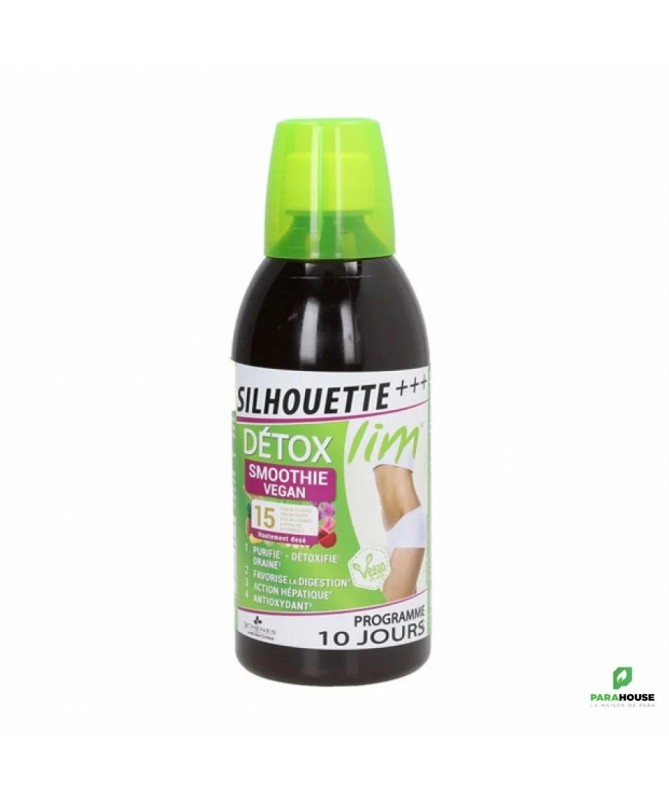 3 CHENES DETOXLIM SMOOTHIE VEGAN SILHOUETTE 500ML DETOXLIM SMOOTHIE VEGAN SILHOUETTE est une association de 14 plantes, fruits, légumes rigouresement sélectionné et de vitamine C pour une cure détox1 sans fatigue5. La bardane favorise la detoxification du corps et contribue à la purification du sang Le pissenlit aide à soutenir les fonctions d'élimination de l'organisme et aide à soutenir le drainage et l'élimination de l'excés d'eau Le tamarin favorise la digestion L'artichaut maintien un foie sain La vitamine C contribue à protéger les cellules contre le stress oxydatif et contribue à réduire la fatigue Composition : Ingrédients: Extrait aqueux de : tamarin, bardane, pissenlit, ortie, bouleau, asperge, spiruline ; eau ; jus concentré d'ananas, Nutriose® : dextrine de blé ; jus concentré de pomme ; purée de betterave ; arome ananas ; épinard ; extrait de persil ; extrait d'artichaut ; acidifiant : acide citrique ; épaississant : gomme xanthane ; conservateurs : sorbate et benzoate de sodium ; vitamine C. Conseils d'utilisation : Prendre 50 ml purs ou dilués, 1 fois par jour.