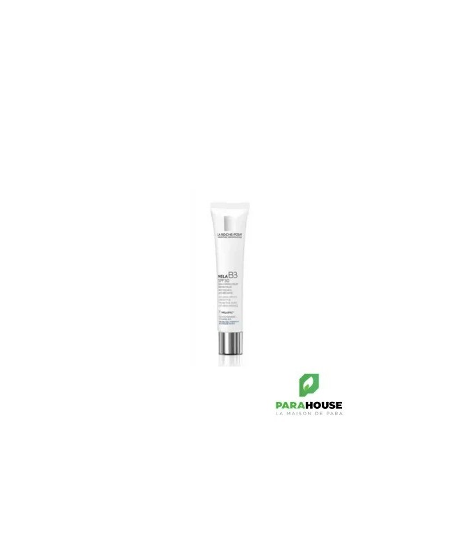 LA ROCHE POSAY MELA B3 SOIN CORRECTEUR ANTI TACHES SPF30 40ML LA ROCHE POSAY MELA B3 SOIN CORRECTEUR ANTI TACHES SPF30 est le nouveau soin correcteur et protecteur qui cible l'hyperpigmentation, grâce au Melasyl™ multibreveté et à la Niacinamide concentrée à 5% pour corriger les taches brunes persistantes. Il est associé à une protection SPF30 + UVA pour prévenir l'apparition de nouvelles taches. Bénéfices : Résultats visibles dès 1 semaine sur l'uniformité du teint 77% le teint semble plus uniforme 78% les taches sont visiblement plus claires dès 2 semaines 77% les taches semblent moins visibles dès 2 semaines Problèmes ciblés : Taches brunes, taches de vieillesse, taches solaires, melasma, hyperpigmentation, marques post-acnéiques, teint terne et irrégulier. Type de peau : Pour tous types de peaux et toutes les carnations. Visage, cou et décolleté. Précautions d'emploi : Ce produit n'est pas un produit solaire. En cas d'exposition solaire intense ou prolongée, utiliser une protection solaire adaptée. Composition : AQUA / WATER / EAU • C15-19 ALKANE • DIISOPROPYL SEBACATE • NIACINAMIDE • ETHYLHEXYL TRIAZONE • GLYCERIN • BIS-ETHYLHEXYLOXYPHENOL METHOXYPHENYL TRIAZINE • SILICA • DROMETRIZOLE TRISILOXANE • BUTYL METHOXYDIBENZOYLMETHANE • C12-15 ALKYL BENZOATE • DICAPRYLYL CARBONATE • CELLULOSE • CI 77891 / TITANIUM DIOXIDE • BUTYLENE GLYCOL • TIN OXIDE • POTASSIUM HYDROXIDE • CARBOMER • ARACHIDYL ALCOHOL • ARACHIDYL GLUCOSIDE • BEHENYL ALCOHOL • 2-MERCAPTONICOTINOYL GLYCINE • SODIUM DILAURAMIDOGLUTAMIDE LYSINE • SODIUM THIOSULFATE • AMMONIUM ACRYLOYLDIMETHYLTAURATE/VP COPOLYMER • HYDROXYACETOPHENONE • CAPRYLOYL SALICYLIC ACID • CAPRYLYL GLYCOL • CITRIC ACID • TRISODIUM ETHYLENEDIAMINE DISUCCINATE • XANTHAN GUM • PENTYLENE GLYCOL • POLY C10-30 ALKYL ACRYLATE • POLYGLYCERYL-2 LAURATE • TOCOPHEROL • PENTAERYTHRITYL TETRA-DI-T-BUTYL HYDROXYHYDROCINNAMATE • PHENOXYETHANOL • MICA • CI 14700 / RED 4 • PARFUM / FRAGRANCE (F.I.L. N70034093/1). Conseils d'utilisation : L’équivalent d’une noisette Le matin Appliquer sur le visage, cou et le décolleté Appliquer sur une peau nettoyée le matin après l’application du sérum.Eviter le contact direct avec les yeux.