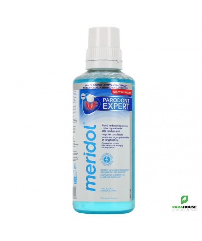 MERIDOL PARODONT EXPERT BAIN DE BOUCHE 400ML MERIDOL PARODONT EXPERT BAIN DE BOUCHE lutte contre la cause de l’irritation et du saignement occasionnel des gencives, et renforce la résistance des gencives contre la parodontite et la récession. Pour ce faire, le bain de bouche cible les bactéries de la plaque dentaire, qui sont souvent à l’origine du problème. L’efficacité de la formule de soin de ce bain de bouche spécial gencives a été cliniquement prouvée pour les dents naturelles et les implants. PARODONT EXPERT BAIN DE BOUCHE contient une formule bi-active avec booster d’efficacité spécialement développée pour les gencives sujettes au saignement occasionnel et au risque de récession et de parodontite. S’ils ne sont pas traités, ces problèmes gingivaux peuvent avoir de graves conséquences pour les dents. La formule bi-active contient de l’acide hyaluronique, qui facilite l’absorption du zinc pour une action antibactérienne efficace. Elle facilite également le processus de guérison des gencives en cas de saignement occasionnel. Le bain de bouche spécial gencives contribue ainsi à renforcer la résistance des gencives contre la parodontite et la récession. Ce bain de bouche spécial gencives est également idéal pour les implants dentaires, qui doivent être protégés contre les bactéries afin d’éviter toute réaction inflammatoire. Composition : Aqua, Glycerin, Propylene Glycol, Sorbitol, Sodium Methyl Cocoyl Taurate, Poloxamer 407, Zinc Lactate, Aroma, Sodium Hyaluronate, Cetylpyridinium Chloride, Sodium Fluoride, Potassium Sorbate, Lactic Acid, Menthol, Sodium Saccharin, Sucralose, CI 42090. Conseils d'utilisation : Après le brossage des dents, rincez la bouche 2 fois par jour avec 20 ml de solution non diluée pendant 30 secondes. Ne pas avaler, ne pas rincer. Pour adultes et enfants à partir de 12 ans. Ne pas laisser à la portée des enfants.