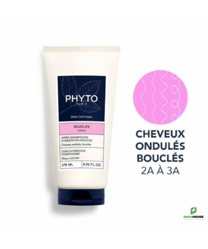 Phyto Après-Shampooing Hydratation BouclesL’Après-Shampooing Hydratation Boucles de Phyto hydrate intensément les cheveux tout en facilitant le démêlage. Il redéfinit naturellement les boucles et les ondulations pour une chevelure souple, brillante et pleine de vitalité.Pour qui ?Cheveux bouclésCheveux ondulésRésultats beautéHydratation optimale des longueursDémêlage facile et rapideBoucles redéfinies et souplesActifs principauxBeurre d'Illipé: nourrit, hydrate et renforce la fibre capillaire.Complexe Hydra Curl: redéfinit les boucles grâce au sucre fermenté.Extrait de Mauve Blanche: apporte douceur et brillance.Le + :Une formule sans silicone, douce et respectueuse de la fibre capillaire.Conseils d'utilisationAprès le shampooing, appliquez une noisette de produit sur les longueurs. Laissez poser 1 à 2 minutes, démêlez délicatement puis rincez abondamment.CompositionAQUA / WATER / EAU, ERYTHRITOL, CETYL ALCOHOL, CETEARYL ALCOHOL, SHOREA STENOPTERA SEED BUTTER, BEHENTRIMONIUM CHLORIDE, POLYQUATERNIUM-37, PRUNUS AMYGDALUS DULCIS (SWEET ALMOND) OIL, PARFUM / FRAGRANCE, CETRIMONIUM CHLORIDE, SODIUM BENZOATE, CITRIC ACID, ETHYLHEXYLGLYCERIN, LINALOOL, TOCOPHEROL, LINALYL ACETATE, ALTHAEA OFFICINALIS ROOT EXTRACT, ALPHA-ISOMETHYL IONONE, LIMONENE, HELIANTHUS ANNUUS (SUNFLOWER) SEED OIL, 4167A.