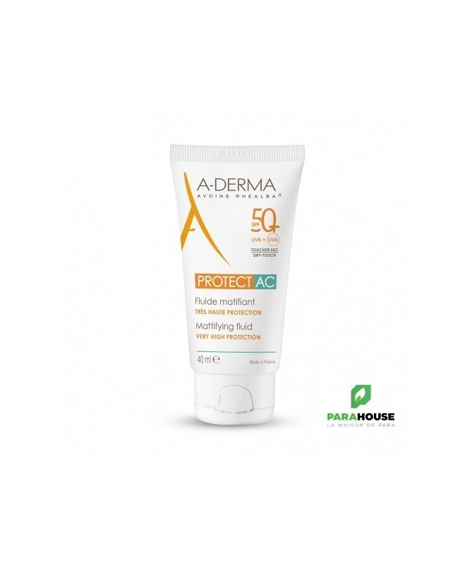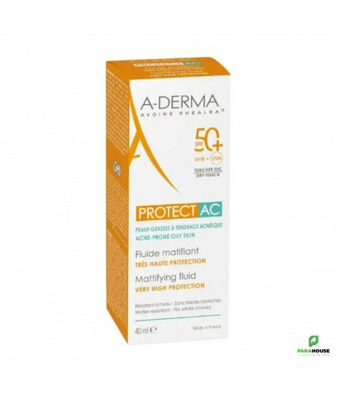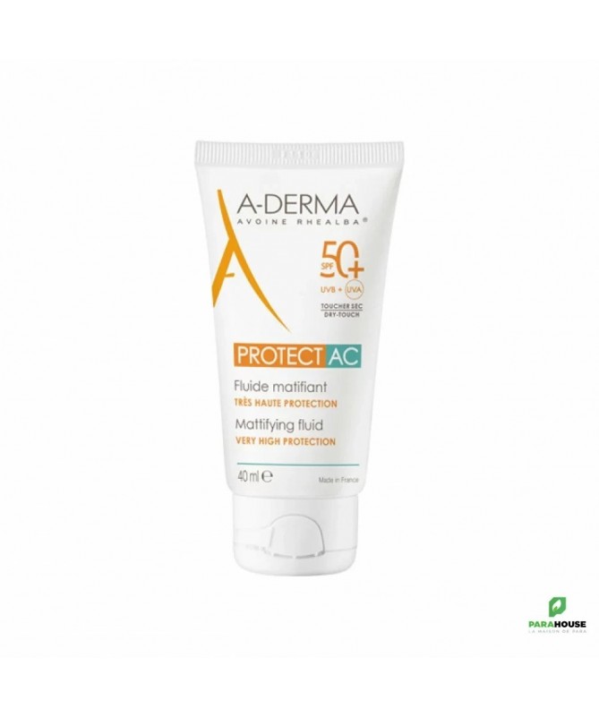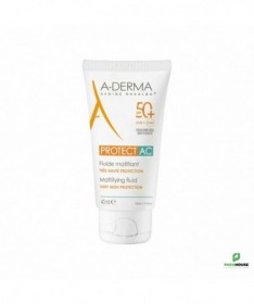 ADERMA PROTECT AC Fluide Solaire Visage Matifiant SPF50+ 40ML Léger, non gras et rapidement absorbé, ADERMA PROTECT AC Fluide matifiant protège les peaux fragiles des effets néfastes du soleil en renforçant également la barrière cutanée et en aidant à sécuriser le capital cellulaire. Délicatement parfumée, cette formule non collante est résistante à l'eau pour assurer un niveau de protection optimal. ADERMA PROTECT AC est un Fluide matifiant SPF 50 offre à la peau à tendance acnéique une très haute protection contre les effets néfastes du soleil et les risques d’hyperpigmentation localisée. Protect ac aderma REGULE l’excès de sébum grâce à l’Acide Glutamique et MATIFIE grâce aux poudres matifiantes de sa formule, pour un fini non-gras. Composition : WATER (AQUA). C12-15 ALKYL BENZOATE. METHYLENE BIS-BENZOTRIAZOLYL TETRAMETHYLBUTYLPHENOL [NANO]. CETEARYL ISONONANOATE. DIISOPROPYL ADIPATE. ISODECYL NEOPENTANOATE. BIS-ETHYLHEXYLOXYPHENOL METHOXYPHENYL TRIAZINE. DIETHYLHEXYL BUTAMIDO TRIAZONE. ALUMINUM STARCH OCTENYLSUCCINATE. BUTYL METHOXYDIBENZOYLMETHANE. POTASSIUM CETYL PHOSPHATE. DECYL GLUCOSIDE. C10-18 TRIGLYCERIDES. ACRYLATES/C10-30 ALKYL ACRYLATE CROSSPOLYMER. AVENA SATIVA (OAT) SPROUT OIL. BENZOIC ACID. CAPRYLYL GLYCOL. DISODIUM EDTA. FRAGRANCE (PARFUM). GLUTAMIC ACID. GLYCERYL BEHENATE. GLYCERYL DIBEHENATE. PROPYLENE GLYCOL. SILICA. SODIUM HYDROXIDE. TOCOPHERYL ACETATE. TRIBEHENIN. XANTHAN GUM Conseils d'utilisation : Il est conseillé d'appliquer a derma protect ac fluide matifiant spf50+ avant l'exposition au soleil et renouvelez fréquemment pour maintenir la protection, surtout après vous être baigné ou essuyé et avoir transpiré. Appliquez 1 doigt de produit sur le visage et le cou d'un adulte. Réduire cette quantité diminue le niveau de protection. Ne restez pas trop longtemps au soleil, même si vous utilisez un produit solaire. L'abus du soleil est dangereux. Ne pas exposer les bébés et les jeunes enfants au soleil. Eviter l'exposition entre 11h et 16h. Utiliser des protections vestimentaires (chapeaux, lunettes, t-shirt). Eviter le contact avec les yeux. - En cas de contact avec les yeux, rincer abondamment.