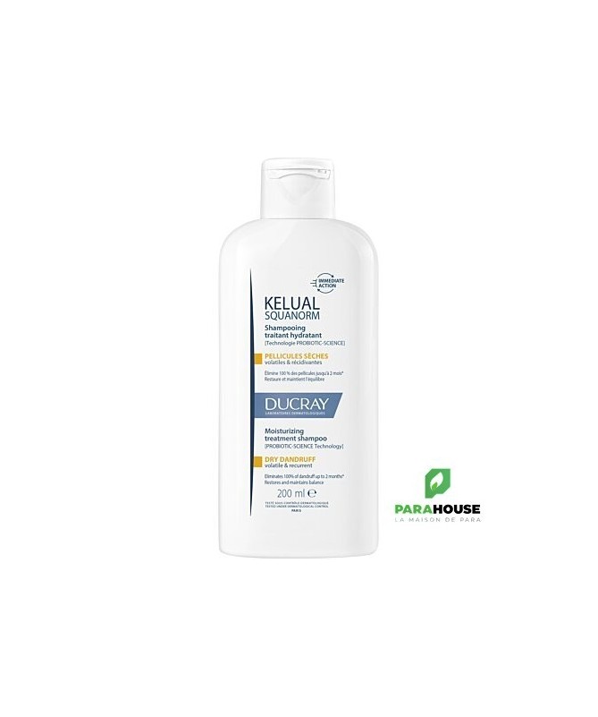 DUCRAY KELUAL Squanorm Shampooing pellicules séches DUCRAY KELUAL Squanorm Shampooing pellicules séches est 1er shampooing antipelliculaire, à la technologie PROBIOTIC-SCIENCE, luttant efficacement contre les pellicules sèches afin de retrouver immédiatement et durablement un cuir chevelu sain. Le shampooing traitant hydratant KELUAL SQUANORM, spécifiquement adapté aux pellicules sèches, incarne la première génération de shampooings antipelliculaires de haute performance s'inspirant des effets bénéfiques et prolongés des probiotiques. ELIMINE 100% des pellicules sèches durablement HYDRATE et maintient l'intégrité de la barrière protectrice dès le 1er shampooings SOULAGE les démangeaisons et sensations de tiraillements Composition : WATER (AQUA). GLYCERIN. DECYL GLUCOSIDE. DISODIUM COCOYL GLUTAMATE. SUCCINIC ACID. 1,2-HEXANEDIOL. CAPRYLYL GLYCOL. FRAGRANCE (PARFUM). HYDROXYPROPYL GUAR HYDROXYPROPYLTRIMONIUM CHLORIDE. PIROCTONE OLAMINE. SODIUM HYDROXIDE. TRISODIUM ETHYLENEDIAMINE DISUCCINATE. XANTHAN GUM Conseils d'utilisation: Il est conseillé d'appliquer Ducray Squanorm Shampooing pellicules seches 3 fois par semaine pendant 2 semaines.