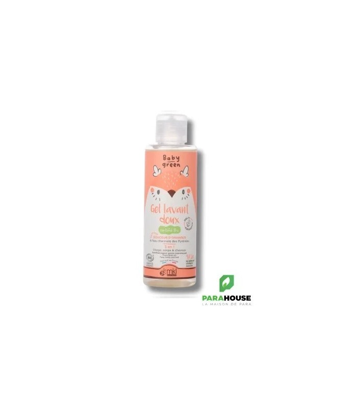 Gel Nettoyant Bébé Green 3-en-1Utilisez notre formule exclusive 3-en-1 pour prendre soin de la peau sensible de votre bébé. Notre gel nettoyant doux, contenant 97,5% d'ingrédients d'origine naturelle et enrichi en eau thermale des Pyrénées, nettoie en profondeur la peau délicate tout en préservant son équilibre naturel.Le gel nettoyant Baby Green peut être utilisé dès la naissance, pour que vous puissiez choyer votre petit en toute sérénité !Son flacon pratique se glisse facilement dans votre sac à langer ou lors de vos déplacements, pour prendre soin de la peau délicate de votre bébé où que vous soyez.IngrédientsAQUA (EAU), LAURYL GLUCOSIDE, COCAMIDOPROPYL BETAINE, GLYCERIN, COCO-GLUCOSIDE, SODIUM CHLORIDE, AQUA (EAU THERMALE), ALOE BARBADENSIS LEAF JUICE POWDER*, MENYANTHES TRIFOLIATA LEAF EXTRACT, ARGAN OIL POLYGLYCERYL-6 ESTERS**, PARFUM (FRAGRANCE), SODIUM BENZOATE, CITRIC ACID, SODIUM GLUCONATE, GLYCERYL OLEATE, POTASSIUM SORBATE, LINALOOL.*Ingrédient issu de l’agriculture biologique.**Transformé à partir d’ingrédients biologiques.97,5% du total est d'origine naturelle.10% des ingrédients totaux proviennent de l’agriculture biologique.Certifié COSMOS ORGANIC par ECOCERT Greenlife selon le référentiel COSMOS.Conseils d'utilisationAppliquer délicatement sur le visage, le corps ou les cheveux humides. Faire mousser puis rincer soigneusement.Usage externe uniquement. Éviter le contact avec les yeux. En cas de contact accidentel, rincer immédiatement et abondamment à l’eau claire.