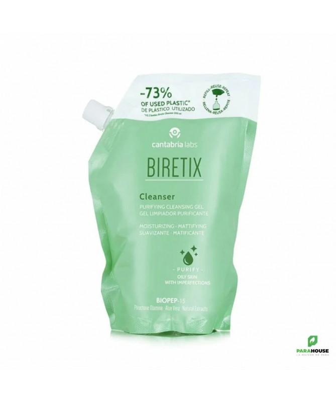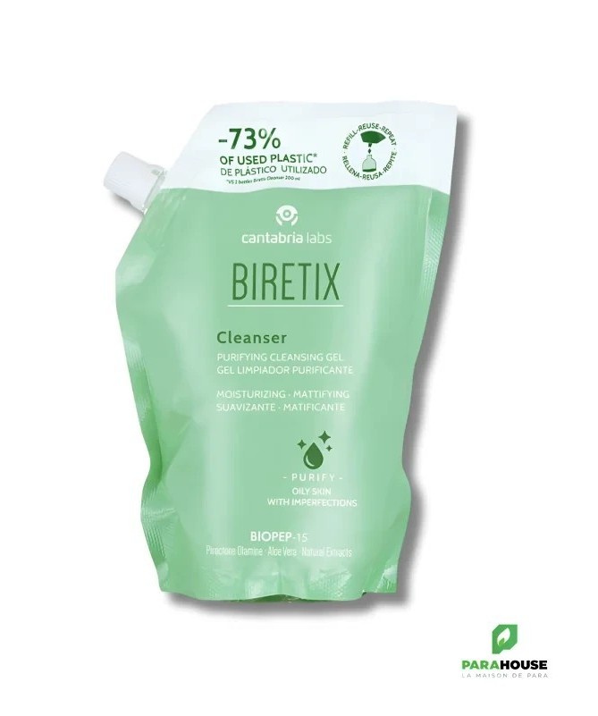 BIRETIX CLEANSER 400ML - Recharge BIRETIX CLEANSER est un nettoyant quotidien qui régule l'excès de sébum et réduit la prolifération des micro-organismes. Formulé avec du BIOPEP 15 et enrichi en actifs apaisants et antioxydants qui éliminent les impuretés sans dessécher la peau. BIRETIX CLEANSER 200ML est un gel nettoyant sébo-régulateur et purifiant, Hydratant, matifiant et adoucissant pour les peaux mixtes, grasses et à tendance acnéique. BIRETIX CLEANSER est testé sous contrôle dermatologique et ophtalmologique. Composition : BIOPEP-15 Piroctone olamine Aloe vera Hamamelis virginiana extract Propolis extract Algae extract Conseils d'utilistion : Appliquer BIRETIX CLEANSER matin et soir par un léger massage sur peau humide. Laisser agir 1 à 2 minutes et rincer abondamment à l'eau.