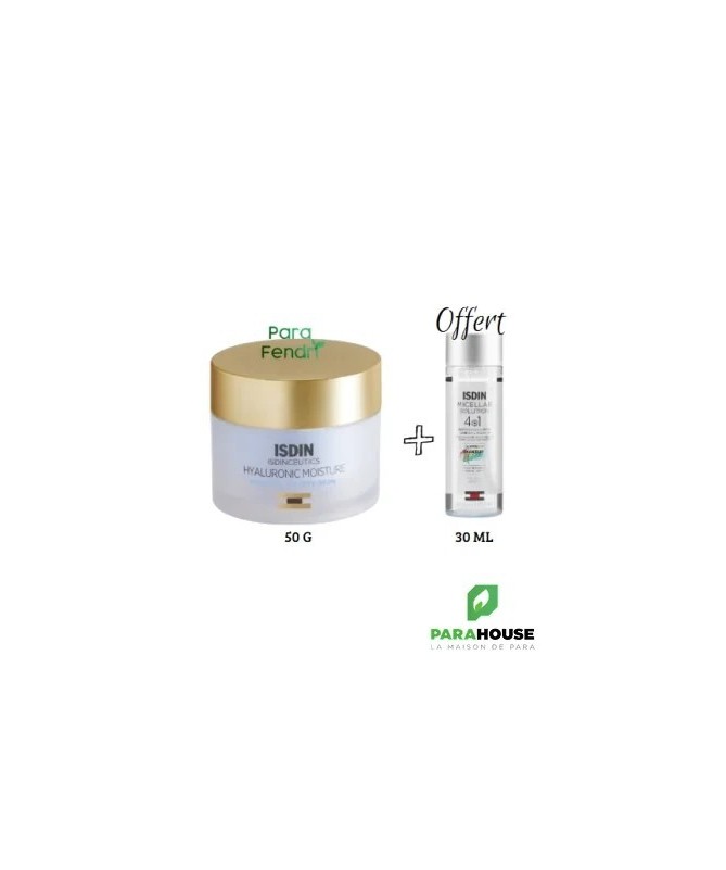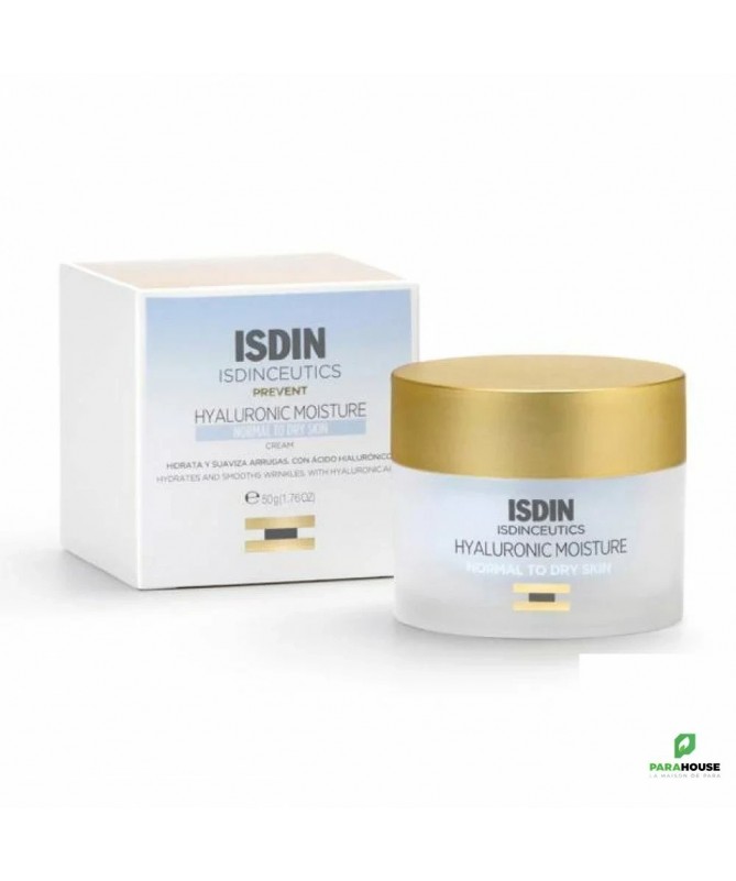 ISDIN Isdinceutics Hyaluronic Moisture Peaux Normales a Seches ISDIN Isdinceutics Hyaluronic Moisture Peaux Normales a Seches est une cCrème visage hydratante légère à base d’acide hyaluronique pour les peaux normales à sèches. ISDIN Isdinceutics Hyaluronic Moisture pénètre rapidement la peau, idéale pour les peaux normales à sèches. Grâce à sa formule riche en acide hyaluronique et en antioxydants, elle aide à prévenir et à réduire les signes de l’âge, pour une peau douce et radieuse. ISDIN Isdinceutics Hyaluronic Moisture : Hydrate la peau en profondeur. Texture légère et absorption rapide. Formule anti-pollution et antioxydante. 88% d'ingrédients d'origine naturelle. Disponible en format rechargeable eco-refill. Composition : Aqua (Water), C15-19 Alkane, Propanediol, Glycerin, Caprylic/Capric Triglyceride, Butylene Glycol, Cellulose, Sodium Acrylates Crosspolymer-2, Dimethicone, 1,2-Hexanediol, Panthenol, Acrylates/C10-30 Alkyl Acrylate Crosspolymer, Caprylyl Glycol, Ammonium Acryloyldimethyltaurate/VP Copolymer, Tocopheryl Acetate, Trehalose, Urea, Parfum (Fragrance), Tocopherol, Vigna Aconitifolia Seed Extract, Dimethicone Crosspolymer, Citric Acid, Maltodextrin, Sodium Hyaluronate, Tetrasodium Glutamate Diacetate, Hydrolyzed Hyaluronic Acid, Pentaerythrityl Tetra-Di-T-Butyl Hydroxyhydrocinnamate, Pentylene Glycol, Serine, Camellia Japonica Flower Extract, Alteromonas Ferment Extract, Algin, Disodium Phosphate, Glyceryl Polyacrylate, Pullulan, Potassium Phosphate, CI 42090 (Blue 1), CI 17200 (Red 33). Conseil d'utilisation : Appliquer matin et soir sur peau propre et sèche, sur le visage, le cou et le décolleté. Masser jusqu'à absoption complète.