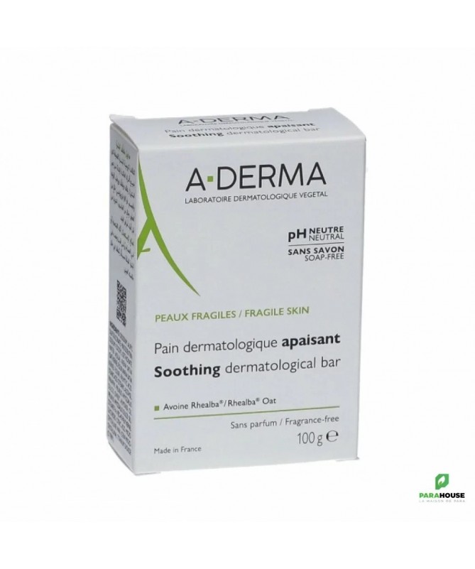 Aderma Pain Dermatologique Apaisant 100G Syndet, le Savon Aderma est le pilier de l'hygiène quotidienne des peaux les plus délicates. Une formule Sans savon et sans parfum, son format pratique peut être utilisé par toute la famille (enfants et adultes), sur le corps comme sur le visage grâce à son pH adapté à celui de la peau. Sa base nettoyante très douce, combinée au Lait d'Avoine Rhealba®, aide à préserver l'équilibre du film hydro-lipidique et laisse la peau souple et apaisée. Formule Bénéfices de Aderma Pain Dermatologique Apaisant : NETTOIE : sa base lavante douce nettoie l’épiderme des grands et des petits sans l’agresser. APAISE : contient des agents surgraissants pour prévenir du dessèchement et adoucir la peau. RESPECTE : formule BIODEGRADABLE* et sécuritaire respectueuse de l’environnement et de la sensibilité des peaux fragiles. Composition : Disodium Lauryl Sulfosuccinate, Maltodextrin, Sodium Cocoyl Isethionate, Stearic Acid, Avena Sativa (Oat) Kernel Flour (Avena Sativa Kernel Flour), Water (Aqua), Cetearyl Alcohol, Paraffin, Ceteareth-6, Prunus Amygdalus Dulcis (Sweet Almond) Oil (Prunus Amygdalus Dulcis Oil), PEG-45 Palm Kernel Glycerides, Citric Acid, Microcrystalline Wax (Cera Microcristallina), Polyethylene, Titanium Dioxide (CI 77891) Hypoallergénique; Sans savon; Sans alcool; Sans paraben; Sans parfum Conseils d'utilisation : Il est recommandé d'appliquer Aderma Savon pain sous la douche ou dans le bain, faire mousser avant d'appliquer sur la peau préalablement mouillée. Rincer abondamment.