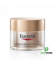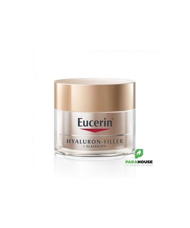 EUCERIN HYALURON-FILLER + ELASTICITY Soin de Nuit Eucerin Hyaluron Filler elasticity est un soin de nuit riche pour les peaux matures qui permet de Renforcer la structure de la peau en améliorant son élasticité et en comblant les rides, même profondes. EUCERIN HYALURON FILLER ELASTICITY Soin de Nuit renforce la structure de la peau en améliorant son élasticité et comble les rides. Sa formule unique et innovante de hyaluron filler elasticity nuit fournit de multiples bénéfices anti-âge grâce à la présence d'ingrédients actifs minutieusement choisis. Après utilisation, la peau est plus ferme, elle est visiblement plus fraîche et éclatante, et les rides sont comblées. La formule contient de l'Arctiine (un ingrédient actif qui accélère le renouvellement du collagène dans les cellules de la peau), qui fonctionne en combinaison avec la Silymarine (un antioxydant puissant qui protège le collagène et l'élastine de leur dégradation et améliore la circulation de la peau au niveau cellulaire). La formule contient également de l'Acide Hyaluronique de bas et de haut poids moléculaire afin de combler visiblement les rides. Composition : Aqua Glycerin Cetearyl Alcohol Panthenol Caprylic Capric Triglyceride Butylene Glycol Glyceryl Stearate Citrate Pentylene Glycol Methylpropanediol Argania Spinosa Kernel Oil Hydrogenated Coco-Glycerides Butyrospermum Parkii Butter Silybum Marianum Fruit Extract Sodium Hyaluronate ARCTIUM-LAPPA-FRUIT-EXTRACT Ascorbyl Palmitate Lecithin Tocopherol Glycine Soja Oil Hydrogenated Palm Glycerides Citrate Carbomer Tapioca Starch Dimethicone Benzyl Alcohol Trisodium EDTA Caprylyl Glycol Sodium Hydroxide BHT Parfum Conseils d'Utilisation: Il est recommandé d'Appliquer le soir sur le visage, le cou et le décolleté, après les avoir bien nettoyés Masser doucement pour faire pénétrer dans la peau Éviter tout contact avec les yeux