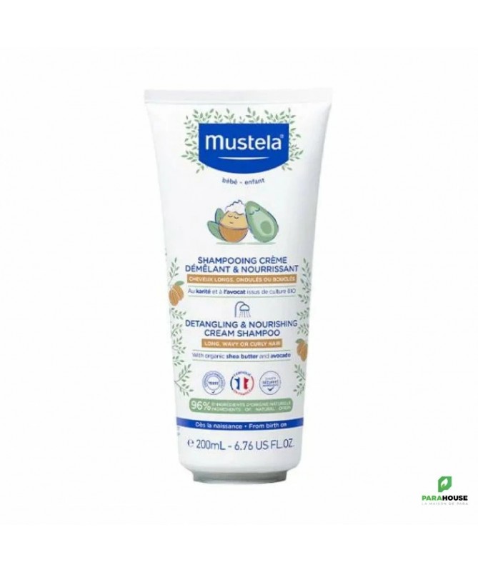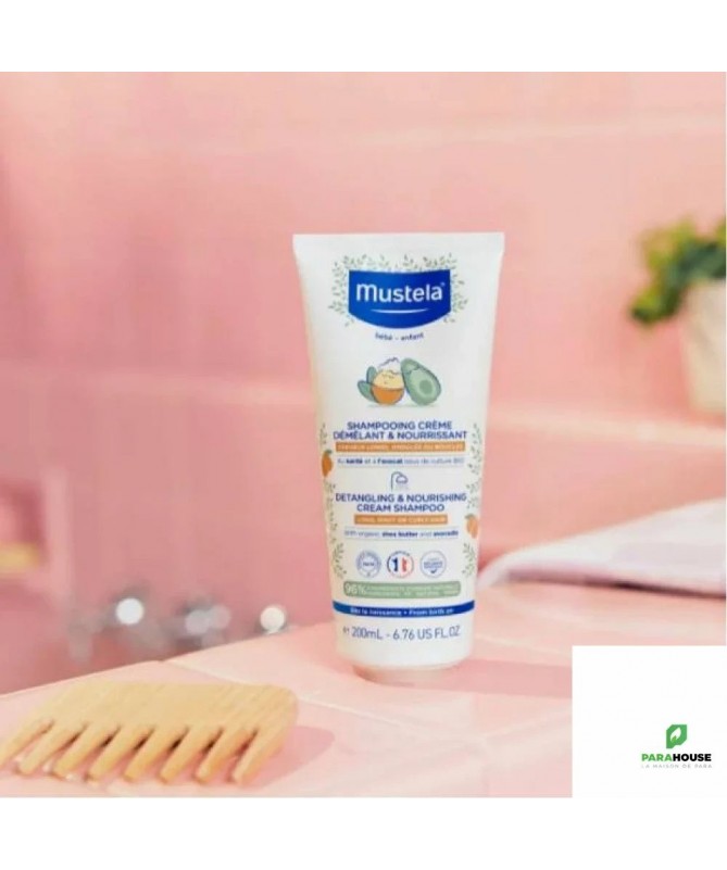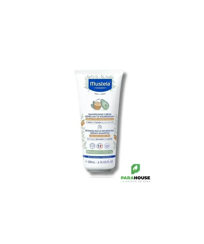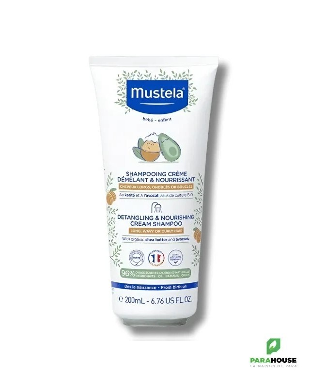 MUSTELA SHAMPOING CREME DEMELANT ET NOURRISSANT 200ML MUSTELA SHAMPOING CREME DEMELANT ET NOURRISSANT est spécialement conçu pour répondre aux besoins spécifiques des cheveux longs, ondulés ou bouclés du bébé ou de l'enfant dès la naissance. Il nettoie en douceur et laisse les cheveux nourris, démêlés et parfumés de l'odeur iconique Mustela, sans les alourdir. Sa formule contient 96% d'ingrédients d'origine naturelle et est enrichie au beurre de karité bio et à l'huile d'avocat issus de culture bio. Sa formule composée à 96% d'ingrédients d'origine naturelle est vegan et sans tensioactifs sulfatés ni silicones. Le beurre de karité bio et l'huile d'avocat bio ont été sélectionnés pour leurs propriétés hydratantes et apportent de la brillance aux cheveux. Composition : INGRÉDIENTS: AQUA/WATER/EAU, COCO-GLUCOSIDE, COCAMIDOPROPYL BETAINE, GLYCERIN, GLYCERYL STEARATE, HELIANTHUS ANNUUS (SUNFLOWER) SEED OIL, POLYGLYCERYL-3 DISTEARATE, CITRIC ACID, DISODIUM COCOYL GLUTAMATE, BUTYROSPERMUM PARKII (SHEA) BUTTER, SCLEROTIUM GUM, SODIUM BENZOATE, GLYCERYL STEARATE CITRATE, PARFUM (FRAGRANCE), GUAR HYDROXYPROPYLTRIMONIUM CHLORIDE, SODIUM COCOYL GLUTAMATE, PERSEA GRATISSIMA (AVOCADO) OIL, POTASSIUM SORBATE Formule vegan sans tensioactifs sulfatés Sans silicones. 96% d'ingrédients d'origine naturelle Conseils d'utilisation : Etape 1 - Appliquer une noix de produit sur les cheveux préalablement mouillés. Etape 2 - Masser délicatement pour faire mousser puis rincer. En cas de contact avec les yeux, rincer abondamment à l’eau claire.