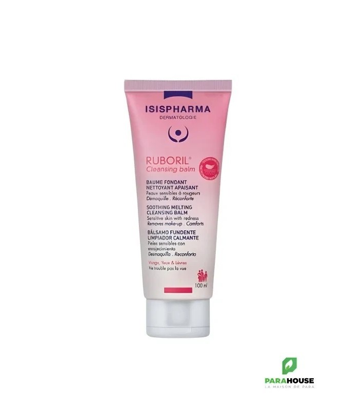 ISISPHARMA RUBORIL Cleansing Balm 100ML ISISPHARMA RUBORIL BAUME NETTOYANT APAISANT est un nettoyant doux vous aidera à préserver votre barrière cutanée et apaiser votre peau, avec une formule agréable et efficace même sur le maquillage waterproof ! Il possède une texture transformante huile/lait pour un nettoyage doux et sensoriel. Ce gel de sucre fond sur la peau et se transforme en huile par le massage, retirant maquillage et impuretés. En l'émulsionnant avec de l'eau, il se transforme de nouveau, cette fois en lait facile à rincer. Un nettoyage efficace, tout en bénéficiant d'un moment sensoriel et d'une excellente tolérance pour les peaux sensibles à rougeurs. Formule minimaliste. Résultats cliniques 64% Diminution des rougeurs observées chez 64% des patients -40% Sensation d’inconfort 95% Le produit démaquille en douceur le visage et les yeux 91% La peau est immédiatement apaisée Composition : Caprylic/Capric Triglyceride, Glycerin, Aqua (Water), Sucrose Laurate, Sucrose Palmitate, Benzyl Alcohol, Dehydroacetic Acid, Bisabolol. Conseils d'utilisation : Préchauffer le baume entre vos doigts pendant 5 secondes avant de l’appliquer sur peau sèche. Masser délicatement. Au bout de quelques secondes, le baume se transforme en huile, offrant une haute efficacité nettoyante pour éliminer le maquillage, même waterproof, les impuretés et le sébum. Émulsionner avec un peu d’eau. L’huile se transforme en lait facile à rincer. Ne laisse pas de film gras. Ne trouble pas la vue. Tamponner et essuyer délicatement à l’aide d’un linge doux. Si vous recherchez un nettoyage léger sans effet démaquillant particulier (le matin par exemple), vous pouvez l’appliquer avec les doigts légèrement humidifiés afin d’obtenir un lait nettoyant doux. Conseil : conserver le produit au réfrigérateur, pour un effet frais à l’application !