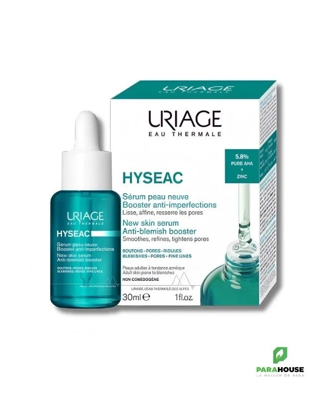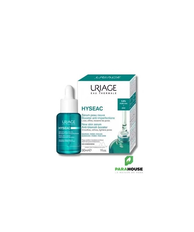 Description:Le Sérum Peau Neuve Booster Anti-Imperfections HYSEAC est formulé avec 5,8% d'AHA PURS et du zinc, des actifs dermatologiques reconnus pour leur efficacité.Il est spécialement conçu pour les peaux adultes à tendance acnéique, en particulier celles souffrant d'acné hormonale liée au stress.Ce sérum combat les imperfections telles que boutons, points noirs, pores dilatés, et ridules.En plus d'améliorer la texture de la peau, il matifie le teint et réduit l'apparence des marques, unifiant ainsi le teint.La formule, non comédogène et testée sur des peaux à tendance acnéique, garantit des résultats visibles dès la première application .Pour qui : Les peaux adultes à tendance acnéique, mixtes à grasses.Résultats beauté : Les imperfections sont réduites, la peau est matifiée et le teint unifié.Actifs : AHA, Zinc.Le + : Absorption rapide grâce à la texture gel-fusion qui se transforme en eau.Conseils D'utilisation :Appliquer matin et soir avant votre soin quotidien.Éviter le contact avec les yeux.Testé sur peaux à tendance acnéique sous contrôle dermatologique.Contient des AHA, utiliser une protection solaire en cas d’exposition.Non comédogène. 94% d'origine naturelle.Composition :AQUA (WATER, EAU) • ALCOHOL DENAT. • POLYGLYCERYL-4 CAPRATE • 1,2-HEXANEDIOL • DIGLYCERIN • GLYCOLIC ACID • MALIC ACID • LACTIC ACID • PROPANEDIOL • SODIUM HYDROXIDE • XANTHAN GUM • BUTYLENE GLYCOL • PARFUM (FRAGRANCE) • PHYTOSPHINGOSINE • PENTYLENE GLYCOL • ZINC LACTATE • ASIATICOSIDE • SCLEROTIUM GUM • ALGIN • ACHILLEA MILLEFOLIUM EXTRACT • GLYCYRRHIZA INFLATA ROOT EXTRACT • RHAMNOSE • GLUCOSE • GLUCURONIC ACID.
