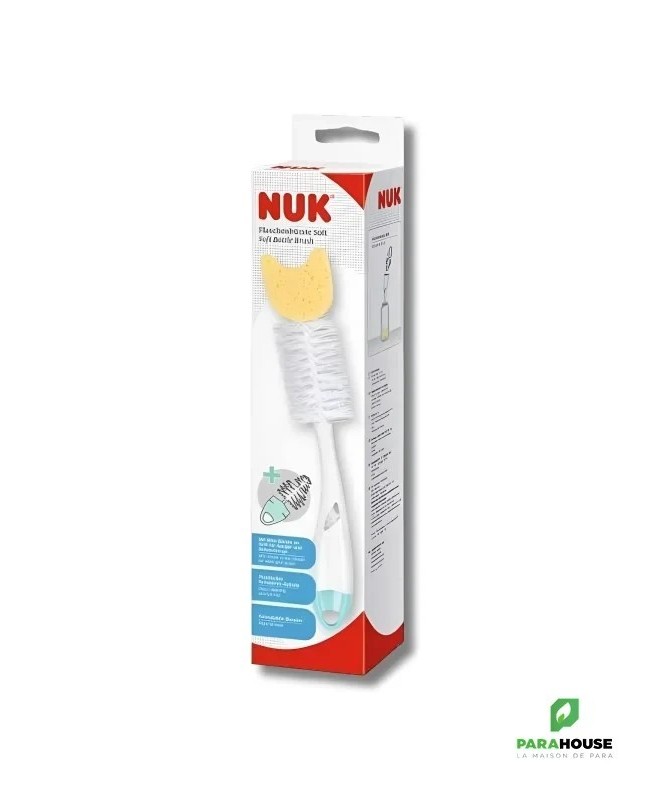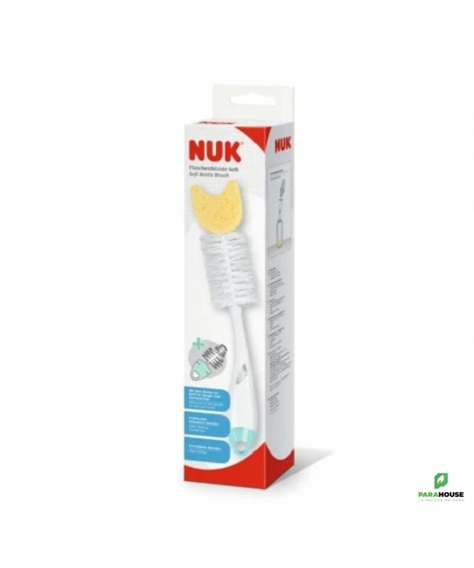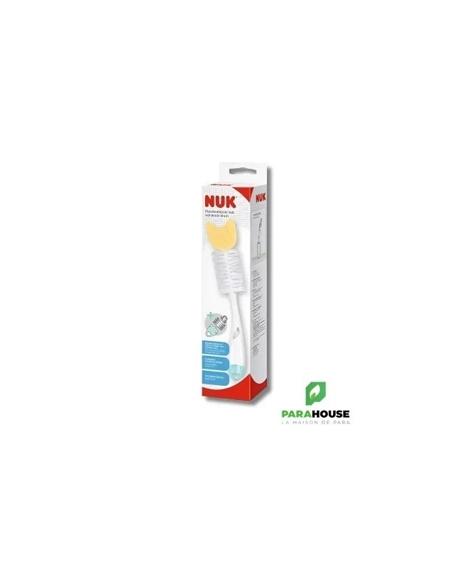 NUK Goupillon 2 en 1 avec éponge NUK Goupillon 2 en 1 avec Eponge est une éponge qui est conçue spécifiquement afin de nettoyer les recoins difficiles. Cette éponge naturelle est très résistante, elle nettoie efficacement et doucement les biberons. Elle se caractérise par un rince-tétine intégré au manche : compartiment ventilé.