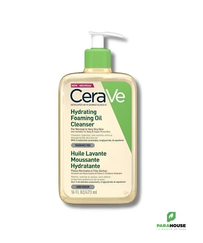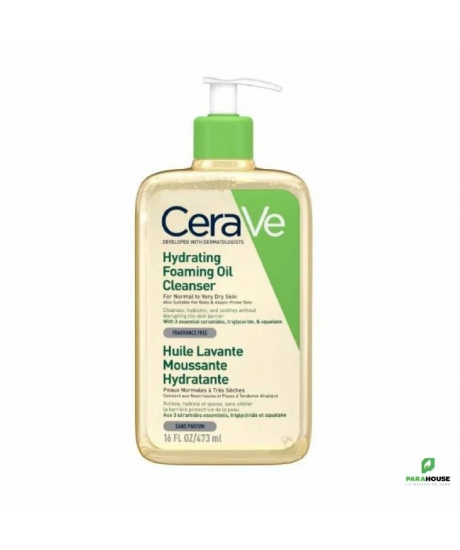 Description :Soin lavant relipidant et hydratant pour peaux normales à très sèches, y compris à tendance atopiqueDéveloppée avec des dermatologues, l’huile lavante moussante CeraVe est un soin quotidien qui associe une action nettoyante ultra-douce à une hydratation profonde et durable. Elle convient à toute la famille, dès 1 mois, et est particulièrement recommandée pour les peaux sèches, sensibles ou atopiques.Action 3-en-1 : Nettoie – Relipide – HydrateNettoyage ultra-doux : Sa base lavante d'origine acides aminés nettoie la peau sans l’agresser ni altérer son film hydrolipidique.Relipidassions intense : Grâce à un complexe exclusif de triglycérides et de squalène, lipides naturellement présents dans la peau, cette huile lavante restaure les lipides essentiels souvent déficients dans les peaux sèches.Hydratation longue durée : Formulée avec de l'acide hyaluronique et les 3 céramides essentiels (NP, AP, EOP), elle aide à renforcer et restaurer la barrière cutanée, limitant ainsi la déshydratation.Texture sensorielle et haute toléranceTexture huile moussante légère et enveloppante, facile à rincer, sans film gras ni sensation collante.Apaise immédiatement les sensations d’inconfort.Adaptée aux zones sensibles du corps comme le visage.Sans parfum, non comédogène, à pH physiologique, pour un respect maximal de l’équilibre cutané.Testée dermatologiquement, convient aux adultes, enfants et nourrissons dès 1 mois.Conseils D’utilisation :Sous la douche : appliquer sur peau mouillée, faire mousser délicatement, puis rincer et sécher sans frotter.Dans le bain : verser l’équivalent de 5 pressions pendant le remplissage de la baignoire. Rincer après le bain.S’utilise quotidiennement, en soin d’hygiène relipidant.Précautions d'emploi :Usage externe uniquement.Éviter le contact avec les yeux. En cas de projection, rincer abondamment à l’eau claire.Ne pas utiliser sur une peau lésée sans avis médical.Indications :Convient pourVisage et corpsAdultes, enfants, nourrissons (dès 1 mois)Peaux normales à très sèchesPeaux à tendance atopique ou sujettes à l’eczémaComposition :(principaux actifs)3 céramides essentiels (NP, AP, EOP) : restaurent la barrière cutanéeAcide hyaluronique : hydrate et retient l’eau dans la peauSqualène et triglycérides : relipidants biomimétiquesCholestérol, phytosphingosine : renforcent le ciment intercellulaireBase lavante douce (coco-bétaïne, disodium cocoyl glutamate)Formule complète :Aqua/Water, Glycerin, PEG-200 Hydrogenated Glyceryl Palmate, Coco-Betaine, Disodium Cocoyl Glutamate, PEG-120 Methyl Glucose Dioleate, Polysorbate 20, PEG-7 Glyceryl Cocoate, PEG-150 Pentaerythrityl Tetrastearate, PPG-5-Ceteth-20, PEG-6 Caprylic/Capric Glycerides, Squalane, Ceramide NP, Ceramide AP, Ceramide EOP, Carbomer, Triethyl Citrate, Sodium Chloride, Sodium Hydroxide, Sodium Cocoyl Glutamate, Sodium Lauroyl Lactylate, Sodium Hyaluronate, Cholesterol, Citric Acid, Capryloyl Glycine, Hydroxyacetophenone, Caprylyl Glycol, Caprylic/Capric Triglyceride, Trisodium Ethylenediamine Disuccinate, Phytosphingosine, Xanthan Gum, Benzoic Acid.