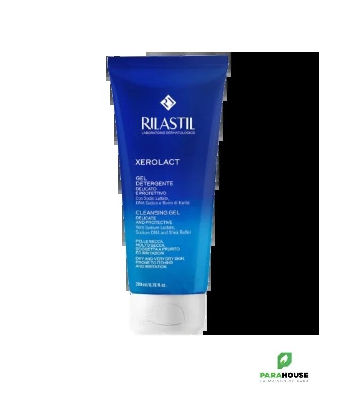 Le Rilastil Xerolact Gel Lavant Réparateur 200ml est un gel sans savon spécialement formulé pour les peaux sèches à très sèches. Il nettoie en douceur tout en préservant l'hydratation de la peau, idéal pour les peaux fragiles et sujettes à des affections cutanées comme la dermatite atopique.- Nettoyage doux et respectueux : Formulé sans savon, ce gel nettoyant offre un nettoyage doux sans agresser la peau, même les plus sensibles ou vulnérables aux affections cutanées.- Hydratation et apaisement : Il nettoie tout en aidant à maintenir l'hydratation de la peau, réduisant ainsi les sensations de tiraillement et de sécheresse qui peuvent résulter de l’utilisation de produits plus agressifs.- Formule sans parabènes : Ce gel est formulé sans parabènes, avec des ingrédients respectueux de la peau, garantissant une sécurité optimale, même pour les peaux les plus sensibles.- Renforce la barrière cutanée : Il aide à préserver et à renforcer la barrière cutanée, tout en réduisant la perte d'humidité, pour une peau douce, lisse et protégée.- Utilisation quotidienne : Idéal pour une utilisation quotidienne, il convient aussi bien aux adultes qu’aux enfants et peut être appliqué sur tout le corps.Conseils d’utilisation :Ce gel moussant est conçu pour le nettoyage et la protection quotidiens des peaux sèches, très sèches et sujettes aux démangeaisons ou irritations. Grâce à son pH physiologique, il aide à préserver la barrière cutanée et à éviter les effets indésirables tels que l'augmentation de la perte d'eau ou la déshydratation.Composition :Aqua (Water), Sodium Lauroyl Sarcosinate, Cocamidopropyl Betaine, Disodium Coccoamphodiacetate, Sodium Chloride, PEG-75 Shea Butter Glycerides, PEG-7 Glyceryl Cocoate, Caprylyl Glycol, PEG-120 Methyl Glucose Dioleate, Lactic Acid, Sodium Lactate, Sodium DNA, Quaternium-80, Propylene Glycol, Ethylhexylglycerin, Chlorphenesin, Disodium EDTA, Fragrance (Parfum).