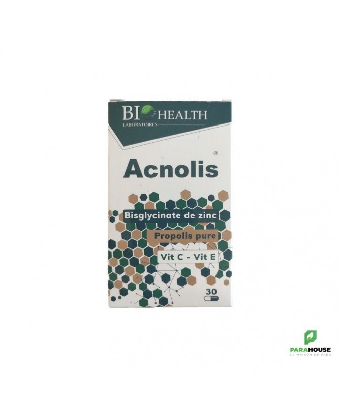 Complément alimentaire à base de :-Bisglycinate de Zinc.-Propolis pure.-Vitamine C.-Vitamine ECompositon :Pour 1 gélulePropolis pure 235 mgVitamine C 120 mgZinc élément (Bisglycinate de Zinc) 15mgVitamine E 12 mgContribue :-Au Maintien d'une peau normale, des cheveux et ongles normaux.-A réguler les hormones qui contrôlent la sécrétion de sebum et lutter contre les problèmes de peau comme l'acné, le psoriasis ou la dermatite.-Au fonctionnement normal du systeme neurologique.-A protéger les cellules contre le stress oxydatif.-Au renforcement du système immunitaire.Conseils d'utilisation :1 gélule par jour, à avaler avec un grand verre d'eau.Précautions d'emploi :-A dose recommandée, il ne présente pas de précaution particulière.-Déconseilléaux enfants et aux femmes enceintes et allaitantes (sans avis médical).-À ne pas prendre en association avec les diurétiques épargneurs de potassium.EFFETS SECONDAIRES:-Troubles digestifs (Nausées, Vomissements).-Céphalée