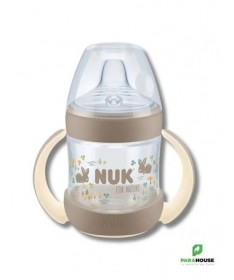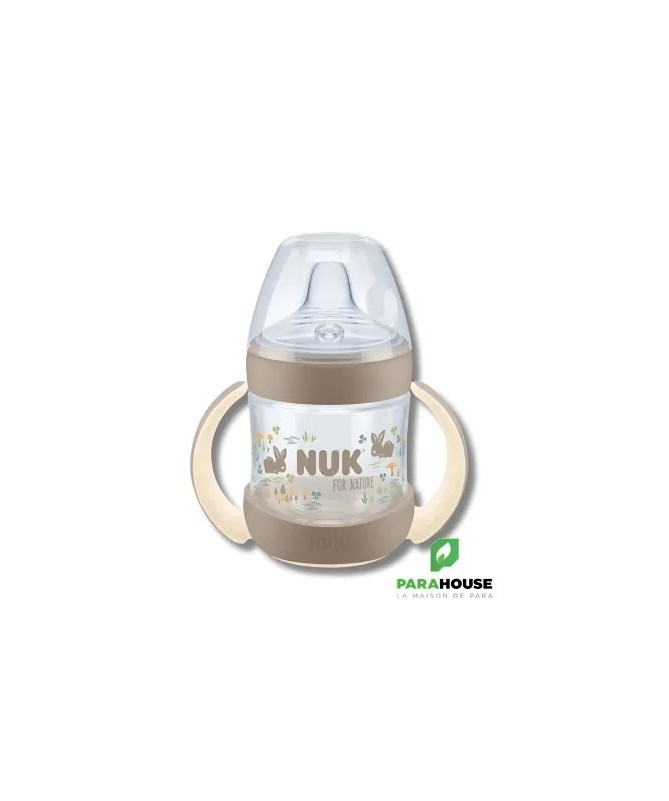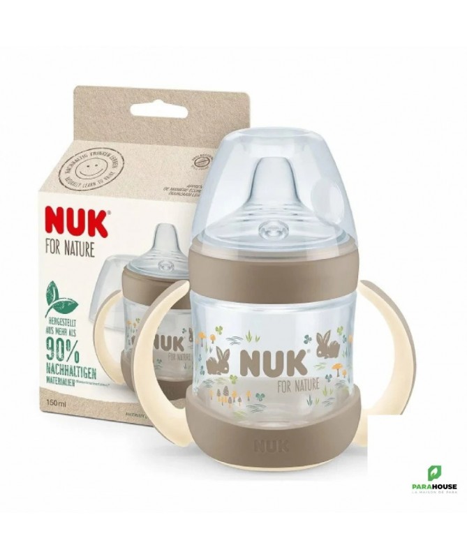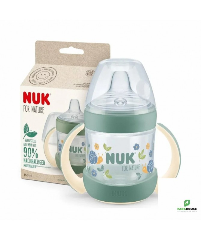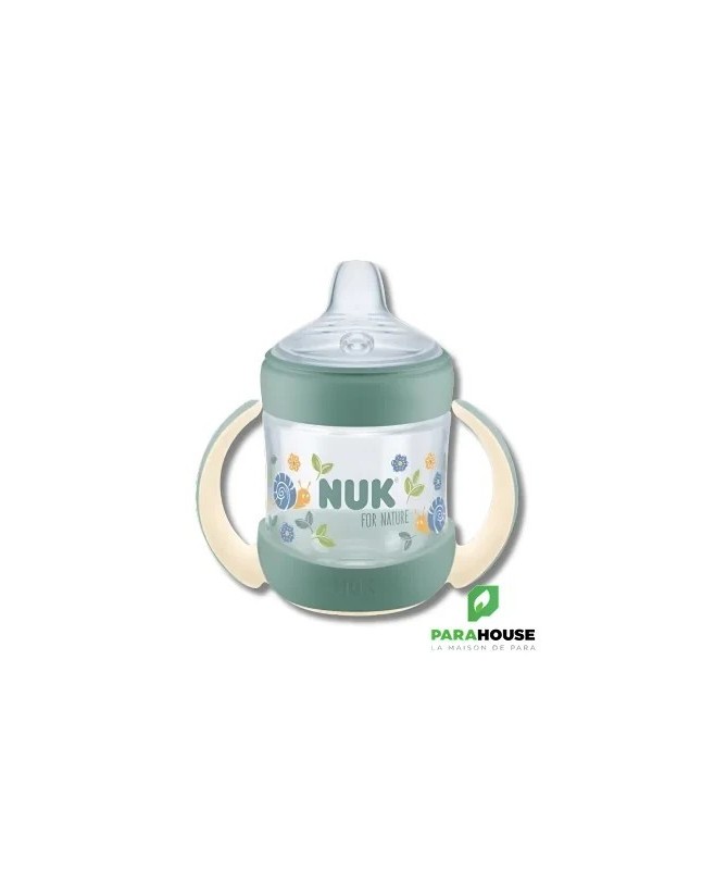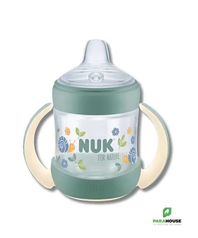 NUK FOR NATURE TASSE D'APPRENTISSAGE AVEC TEMPERATURE CONTROL +6M 150ML NUK FOR NATURE TASSE D'APPRENTISSAGE AVEC TEMPERATURE CONTROL est fabriquée avec plus de 90 % de matériaux durables. Le bec verseur de la tasse NUK for Nature est particulièrement souple et offre un large rebord aux lèvres de bébé. Il va de soi qu'il est également anti-fuite. À cela s'ajoute l'affichage innovant du contrôle de la température qui passe du bleu au blanc lorsque la boisson est trop chaude. le contrôle de la température NUK sert de contrôle supplémentaire. C'est pourquoi, il convient de vérifier la température des boissons chaudes en déposant quelques gouttes sur le poignet. Fabriquée à plus de 90 % de matériaux durables (méthode de bilan de masse) Produite de manière respectueuse des ressources avec l'électricité verte, réduit les émissions de CO2, fabriquée de manière économe en énergie pour une véritable mini-empreinte Repose-lèvres particulièrement large et ultra souple pour une sensation naturelle de boisson Anses douces et ergonomiques pour les petites mains des enfants Anti-fuite, sans BPA, avec affichage du contrôle de la température NUK breveté, emballage papier certifié FSC à 100 % et recyclable dans la poubelle à papier