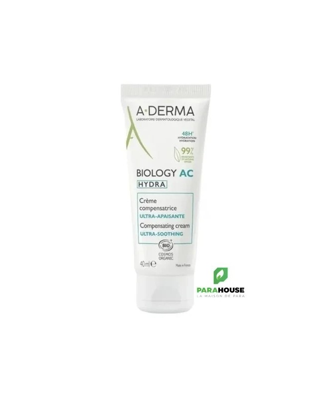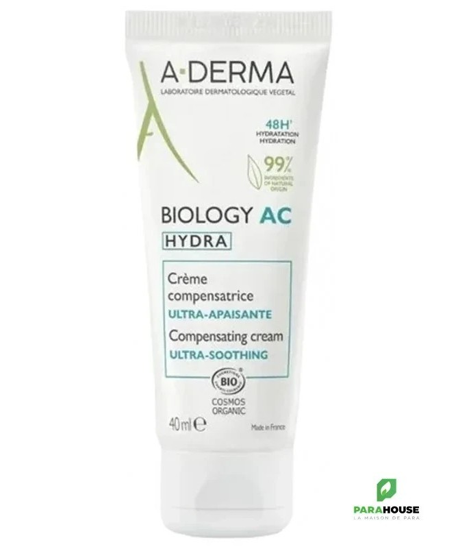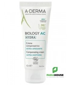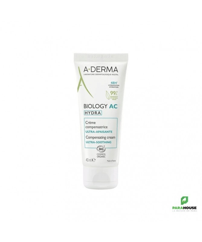 Découvrez lacrème hydratanteA-DERMA BIOLOGY AC HYDRA, une solution idéale pour ceux qui recherchent une peau apaisante et profondément hydratée. Avec sa formule unique, cette crème compensatrice ultra apaisante de 40 ml pénètre rapidement pour offrir un confort immédiat à votre épiderme. Conçue pour les peaux sensibles, elle aide à restaurer la barrière cutanée tout en apaisant les irritations et les sensations de tiraillement. Grâce à ses ingrédients naturels, A-DERMA BIOLOGY AC HYDRA nourrit intensément la peau, la laissant douce et souple au toucher.Utilisée quotidiennement, cette crème hydratante aide à conserver l'hydratation nécessaire pour un teint éclatant et sain. Que vous ayez une peau sèche, sensible ou irritée, A-DERMA BIOLOGY AC HYDRA est la réponse à vos besoins. Offrez à votre peau le soin qu'elle mérite avec cette crème apaisante qui allie efficacité et douceur. Faites le choix d'une peau revitalisée et apaisée grâce à A-DERMA BIOLOGY.Composition : Aqua, Glycerin, Cetearyl Alcohol, Propanediol, Butyrospermum Parkii Butter, etc.Composition :WATER (AQUA). CAPRYLIC/CAPRIC TRIGLYCERIDE. GLYCERIN. CETEARYL ALCOHOL. PENTYLENE GLYCOL. BEHENYL ALCOHOL. GLYCERYL STEARATE. HYDROGENATED VEGETABLE OIL. MICROCRYSTALLINE CELLULOSE. CETEARYL GLUCOSIDE. SIMMONDSIA CHINENSIS (JOJOBA) SEED OIL (SIMMONDSIA CHINENSIS SEED OIL)*. GARCINIA MANGOSTANA PEEL EXTRACT. AVENA SATIVA (OAT) FLOWER/LEAF/STEM JUICE (AVENA SATIVA FLOWER/LEAF/STEM JUICE)*. SODIUM HYALURONATE. TARAXACUM OFFICINALE (DANDELION) RHIZOME/ROOT EXTRACT (TARAXACUM OFFICINALE RHIZOME/ROOT EXTRACT). ALOE BARBADENSIS LEAF JUICE POWDER*. CITRIC ACID. FRAGRANCE (PARFUM). GLYCERYL CAPRYLATE. HELIANTHUS ANNUUS (SUNFLOWER) SEED OIL (HELIANTHUS ANNUUS SEED OIL). MALTODEXTRIN. SODIUM BENZOATE. SODIUM STEAROYL GLUTAMATE. TOCOPHEROL. XANTHAN GUM