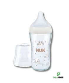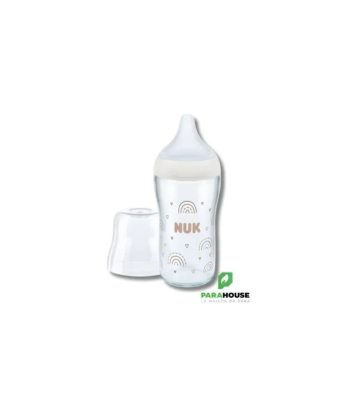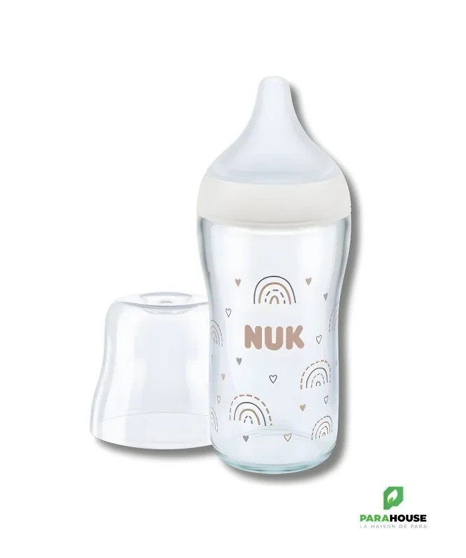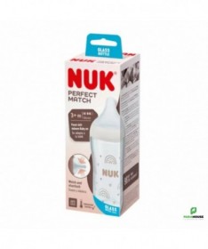 NUK PERFECT MATCH BIBERON VERRE M 230ML NUK BIBERON PERFECT MATCH VERRE M : S'adapte à ton bébé – doux et élastique - accepté par 98% des bébés Tétine de forme fluide avec fonction anti-colique – pour un débit calme et naturel 230ml avec taille M (à partir de 3 mois, pour le lait) Repose-lèvres large et doux – donne au bébé une sensation familière, semblable à celle de la peau Biberon en verre de haute qualité, avec indicateur breveté de Temperature Control, capacité de 120 ml Peut être combiné avec tous les accessoires NUK Perfect Match et tire-laits NUK Soft&Easy Les biberons NUK sont conformes à la norme européenne de sécurité EN14350.