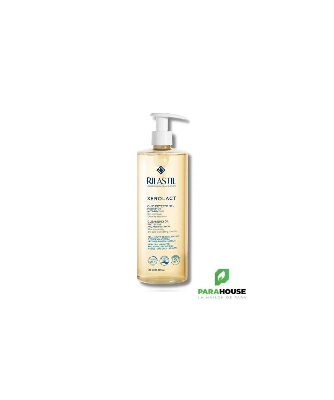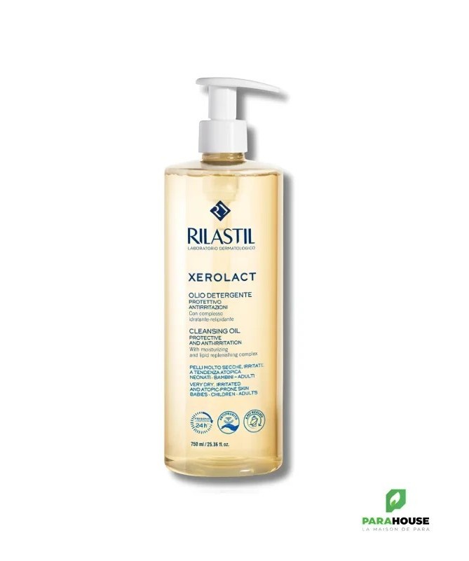 Huile Démaquillante Rilastil XerolactL'Huile Démaquillante Rilastil Xerolact nettoie en douceur le visage et le corps, apportant confort et hydratation tout en restaurant la barrière cutanée.Bienfaits :Nettoyage doux :Dissout le maquillage, les impuretés et le sébum sans irriter la peau.Hydratation prolongée :Apporte confort et prévient le tiraillement.Réparation de la barrière cutanée :Protège la peau et réduit la perte d'humidité.Action apaisante :Soulage les irritations et démangeaisons.Convient à toute la famille :Adaptée aux adultes, enfants et nourrissons.Pratique :Format 750 ml pour une utilisation quotidienne facile.Conseils d’utilisation :Appliquer sur peau humide en massant doucement. Pour le bain, ajouter 5 pulvérisations dans l'eau. Usage externe uniquement. Éviter le contact avec les yeux. Conserver à l’abri de la chaleur.Composition :Aqua (Water), Glycerin, PEG-7 Glyceryl Cocoate, Sodium Cocoamphoacetate, Sodium Lactate, Sodium Lauryl Glucose Carboxylate, PEG-90 Glyceryl Isostearate, Propanediol, Polysorbate 20, Lauryl Glucoside, Sodium Chloride, Lactic Acid, Coco-Glucoside, Glyceryl Oleate, Oryza sativa (Rice) Bran Oil, Prunus amygdalus dulcis (Sweet Almond) Oil, Niacinamide, Schisandra chinensis Fruit Extract, Laureth-2, Sodium Citrate, Caprylhydroxamic Acid, Citric Acid, Sorbic Acid, Tocopherol, Hydrogenated Palm Glycerides Citrate, Lecithin, Ascorbyl Palmitate, Parfum (Fragrance).