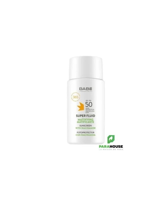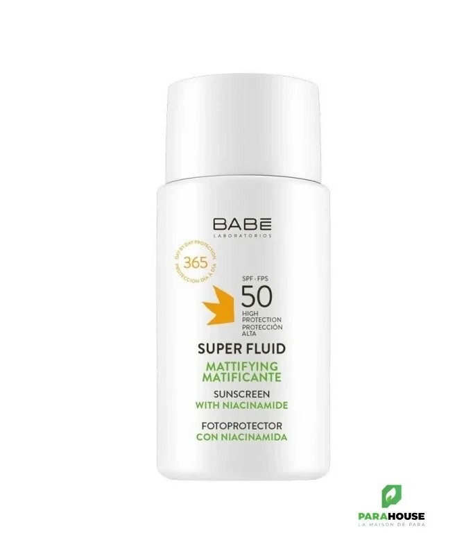 BABE Super Fluid Matifiant SPF 50 BABE Super Fluid Matifiant SPF 50 est une Haute protection quotidienne et texture oil-free ultra-fluide qui s'adapte à votre peau. Particulièrement adapté aux peaux grasses ou à tendance acnéique. Avec de la niacinamide pour rééquilibrer l'excès de sébum. BABE Super Fluid est un produit facile à utiliser et à appliquer qui s'adapte à votre peau. Sa principale caractéristique est sa texture super fluide qui s'absorbe rapidement, laissant une sensation d'hydratation légère et non grasse, grâce à la Niacinamide, l'un des ingrédients inclus dans sa formule pour contrôler l'excès de sébum sur la peau. Super Fluid Mattifying est la version Oil-Free de cette crème solaire, qui offrira une protection sans rendre la peau grasse ni obstruer les pores. Super Fluid offre une haute photoprotection faciale dans un format confortable pour une utilisation quotidienne. Le produit idéal pour qu'il n'y ait plus d'excuses lorsqu'il s'agit de protéger la peau 365 jours par an, que vous soyez au bureau ou à la plage en train de bronzer. Utilisez-le juste après votre crème hydratante quotidienne et vous verrez comment votre peau est plus juteuse et avec un fini soyeux. De plus, Super Fluid n'offre pas seulement une protection contre les rayons du soleil, c'est aussi un bouclier protecteur contre les rayons infrarouges, la lumière bleue émise par les écrans et les appareils mobiles, et la pollution. Il convient à tous les types de peau, waterproof et ne pique pas les yeux ! Photoprotection visage SPF 50 Hydrate la peau Protège le visage des UVA-UVB, de la lumière bleue, des IR-A et de la pollution Action matifiante et séborégulatrice grâce à la Niacinamide - Fini soyeux Hydrate la peau Protège le visage des UVA-UVB, de la lumière bleue, des IR-A et de la pollution Action matifiante et séborégulatrice grâce à la Niacinamide Fini soyeux Composition : AQUA,DICAPRYLYL CARBONATE,ETHYLHEXYL METHOXYCINNAMATE,PROPANEDIOL,SILICA,NIACINAMIDE,DIBUTYL ADIPATE,BUTYL METHOXYDIBENZOYLMETHANE,ETHYLHEXYL TRIAZONE,BIS-ETHYLHEXYLOXYPHENOL METHOXYPHENYL TRIAZINE,C20-22 ALKYL PHOSPHATE,C20-22 ALCOHOLS,BENZOTRIAZOLYL DODECYL P-CRESOL,CARNOSINE,TOCOPHEROL,PARFUM,CAPRYLYL/CAPRYL GLUCOSIDE,1,2-HEXANEDIOL,SODIUM GLUCONATE,XANTHAN GUM,POLYACRYLATE CROSSPOLYMER-6,BHT,SODIUM HYDROXIDE,o-CYMEN-5-OL Conseils d'utilisation :
