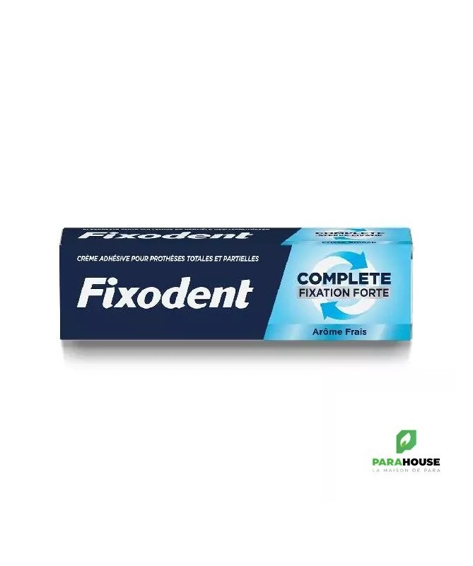 Fixodent est une colle pour dentier au goût Menthe Fraiche, spécialement conçue pour offrir un soin complet avec 3 avantages : tenue forte, confort amélioré et protection anti-particulesFixodent maintient une tenue forte tout au long de la journée et offre un confort amélioré grâce au coussin créé entre les gencives et les prothèses. Il aide également à éviter que les particules alimentaires ne s’infiltrent sous vos prothèses dentaires. Ainsi, vous pouvez simplement vous détendre et profiter au maximum de votre vie.En plus de la tenue puissante, du confort et de la protection anti-particules, profitez du goût Menthe Fraiche de Fixodent.Conseils d'utilisation :Nettoyer et sécher la prothèse dentaireAppliquer la crème adhésive en bandes finesMettre la prothèse dentaire en place et la maintenir quelques secondesAvant d’enlever votre prothèse, rincez-vous la bouche à l’eau tiède. Appliquez un léger mouvement de va-et-vient et enlevez votre prothèse. Maintenez votre prothèse humide quand vous ne la portez pas.Attention :Ne pas utiliser une quantité de produit plus importante que celle illustrée sur le schéma (pour une prothèse dentaire complète, 6 lignes maximum ou une longueur totale d'environ 7,5 cm). Si le produit déborde de la prothèse dentaire, une fois cette dernière en place, c'est que vous utilisez une quantité de produit trop importante.Ne pas utiliser une quantité de produit trop importante pour les prothèses dentaires mal ajustées. Consultez régulièrement votre dentiste pour veiller à l'ajustement optimal de votre prothèse dentaire. Une prothèse dentaire mal ajustée peut nuire à votre santé.Ne pas utiliser le produit plus d'une fois par jour.